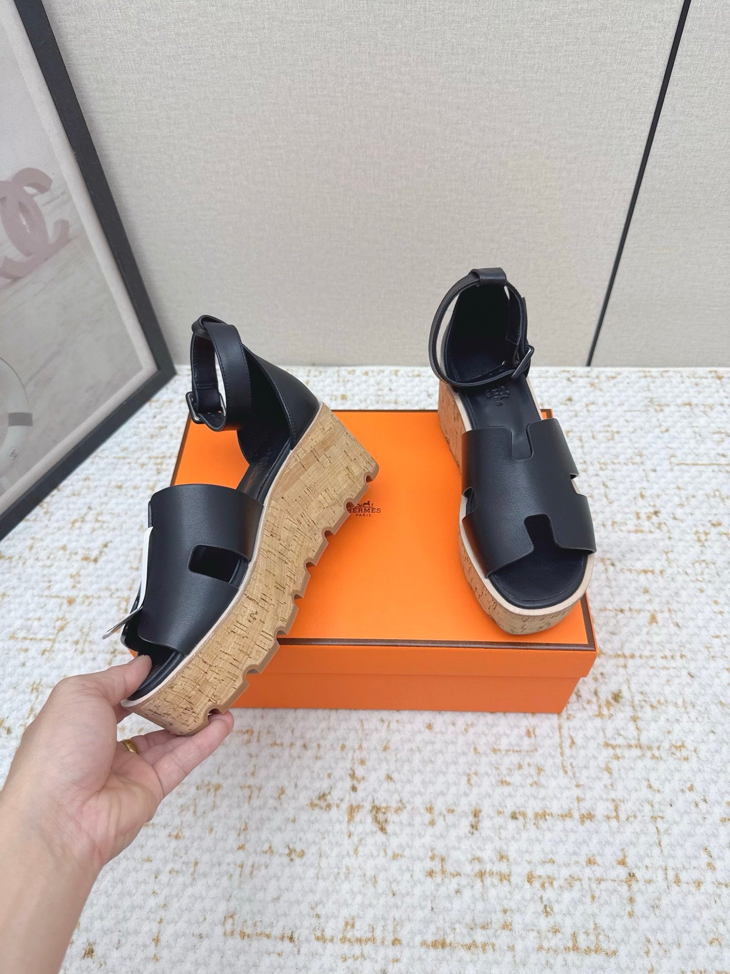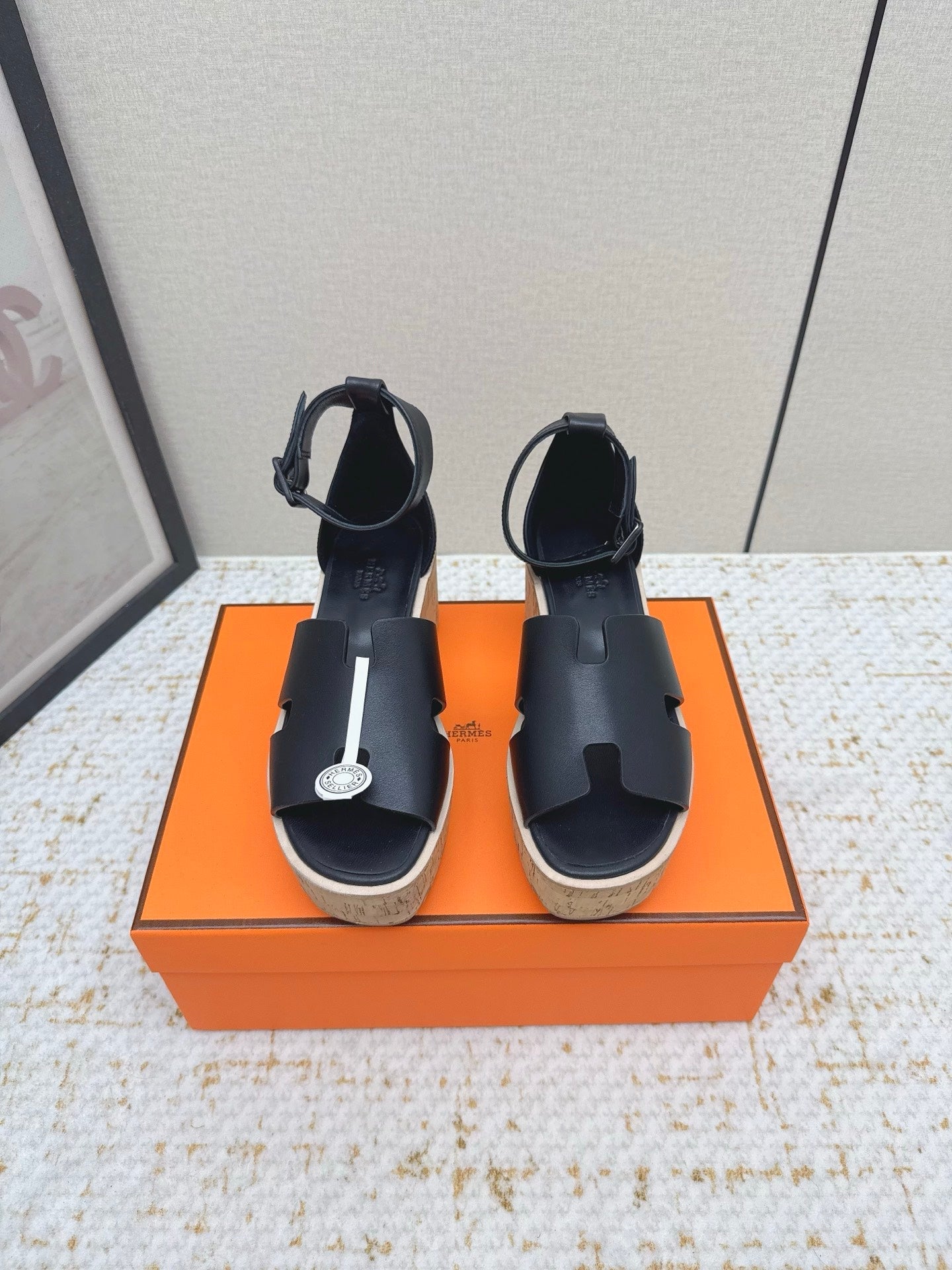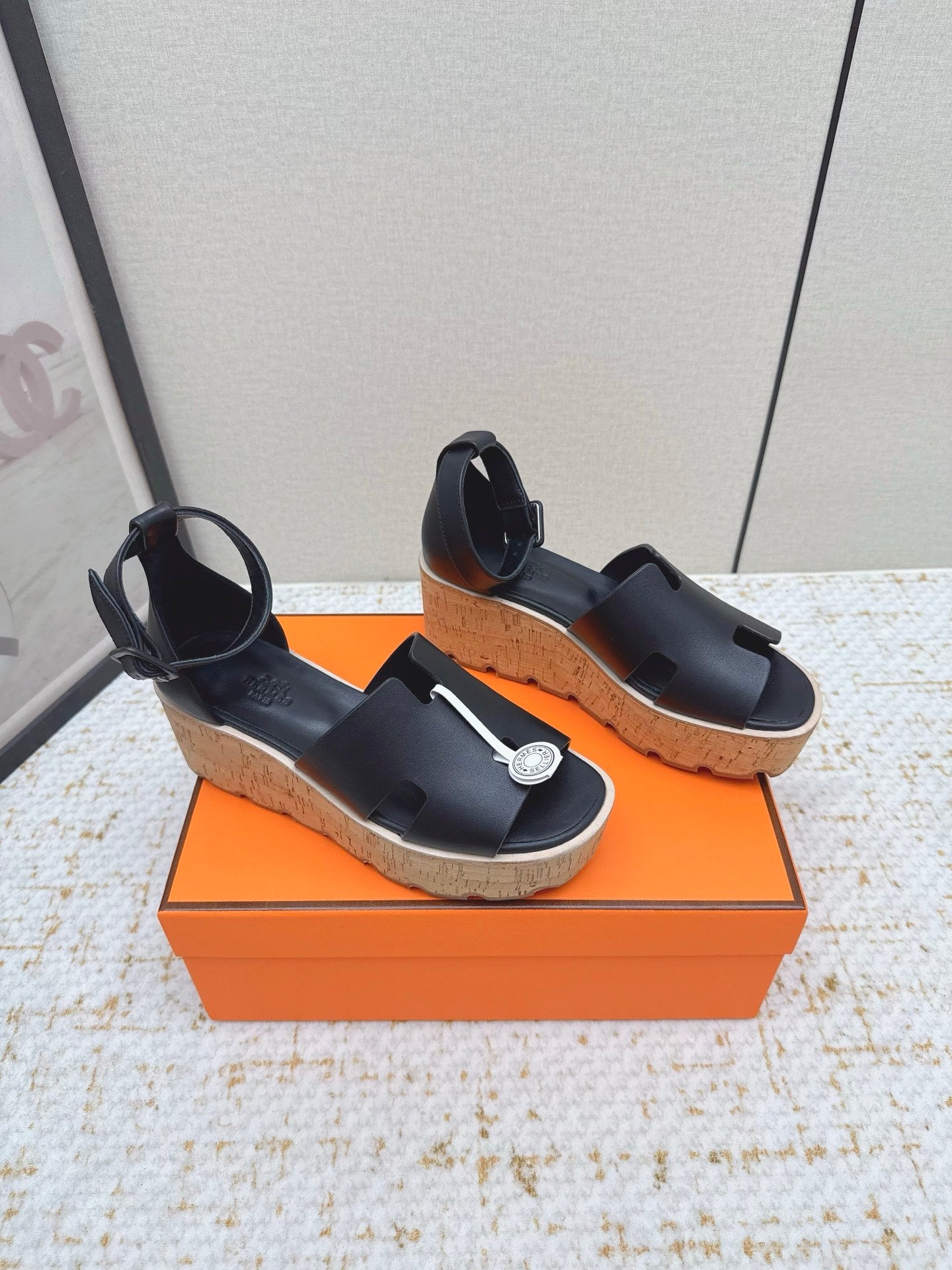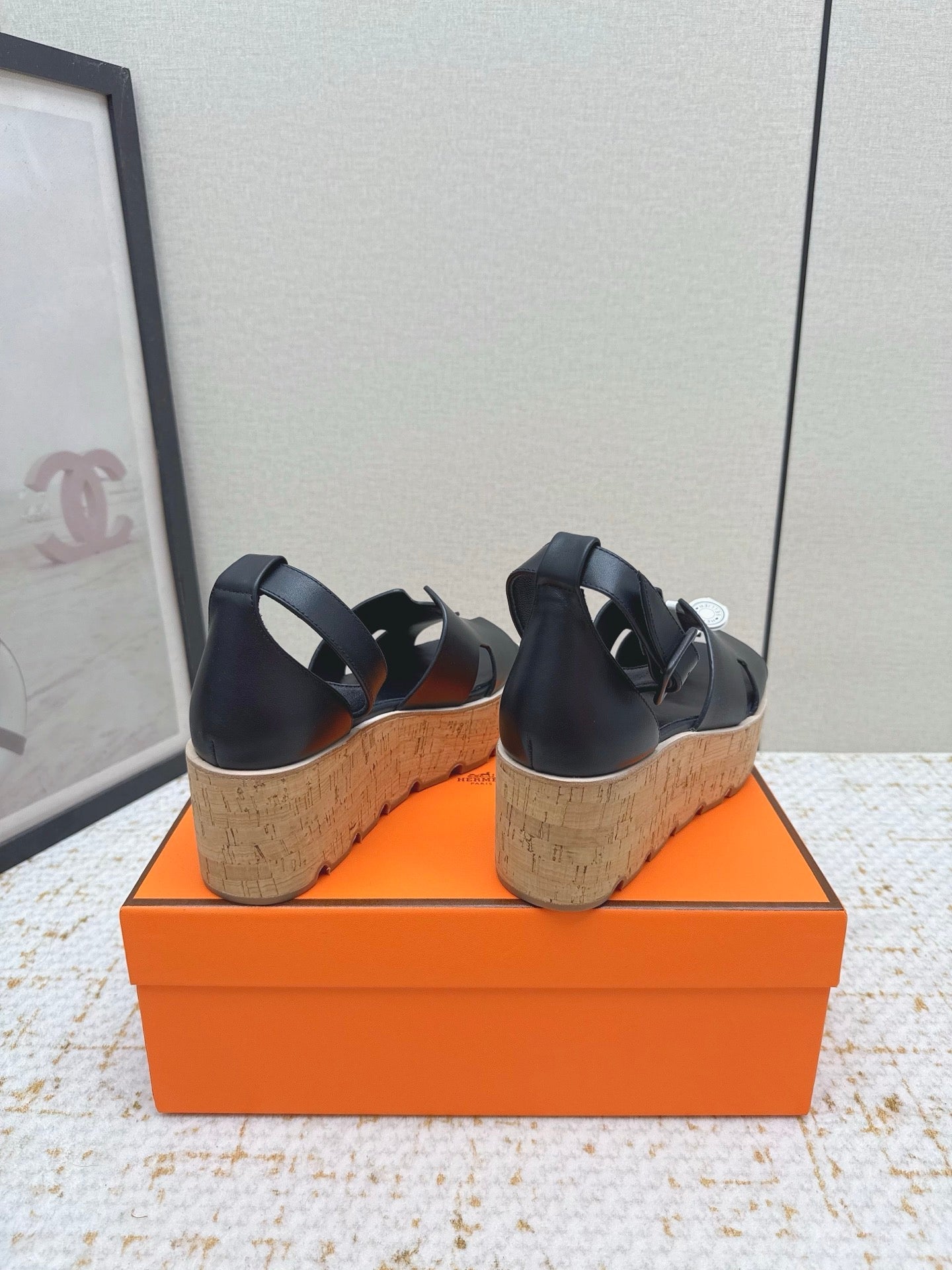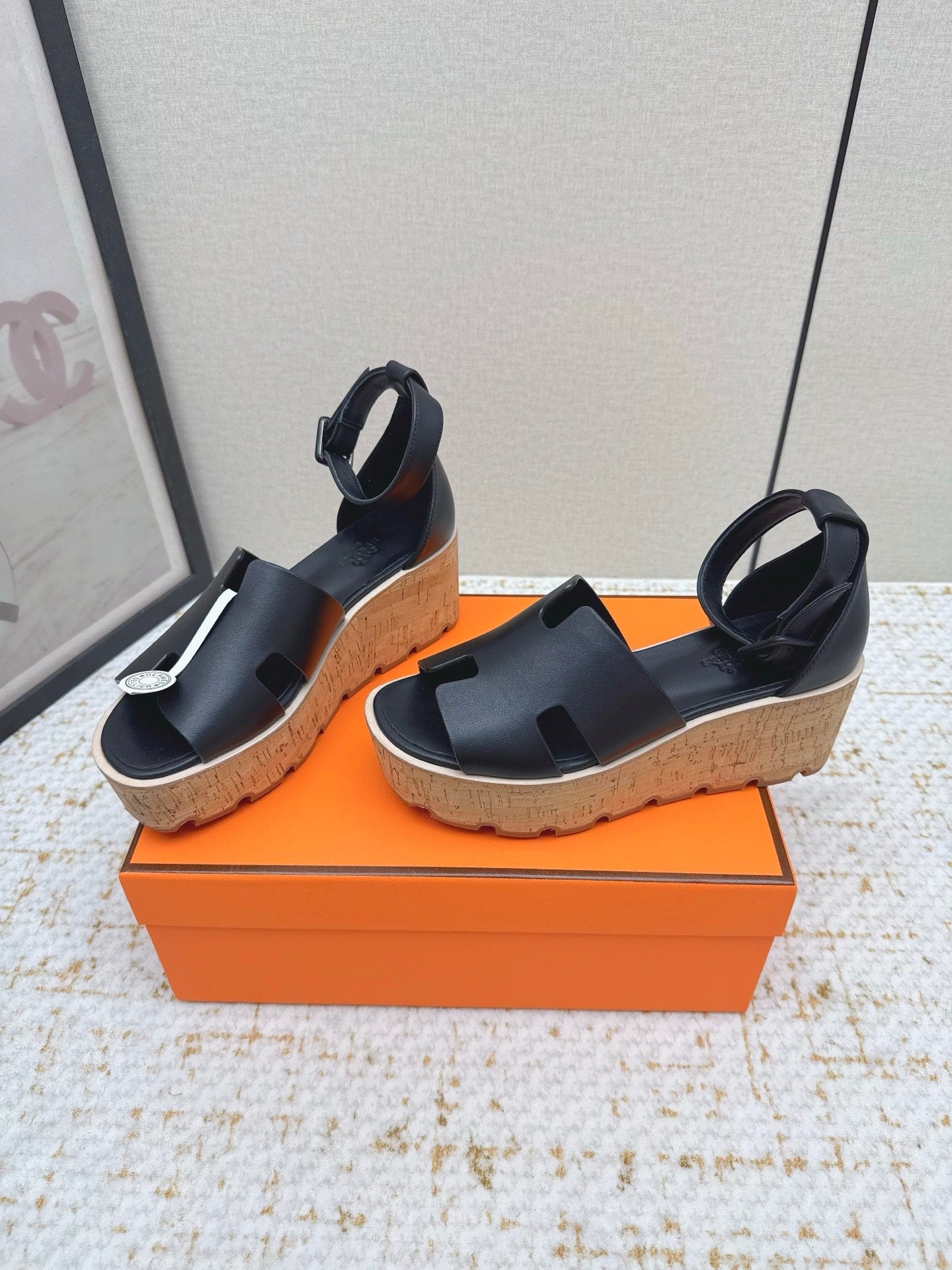 HM Luce 30 Sandal 65mm Black Cowhide Cork 477967