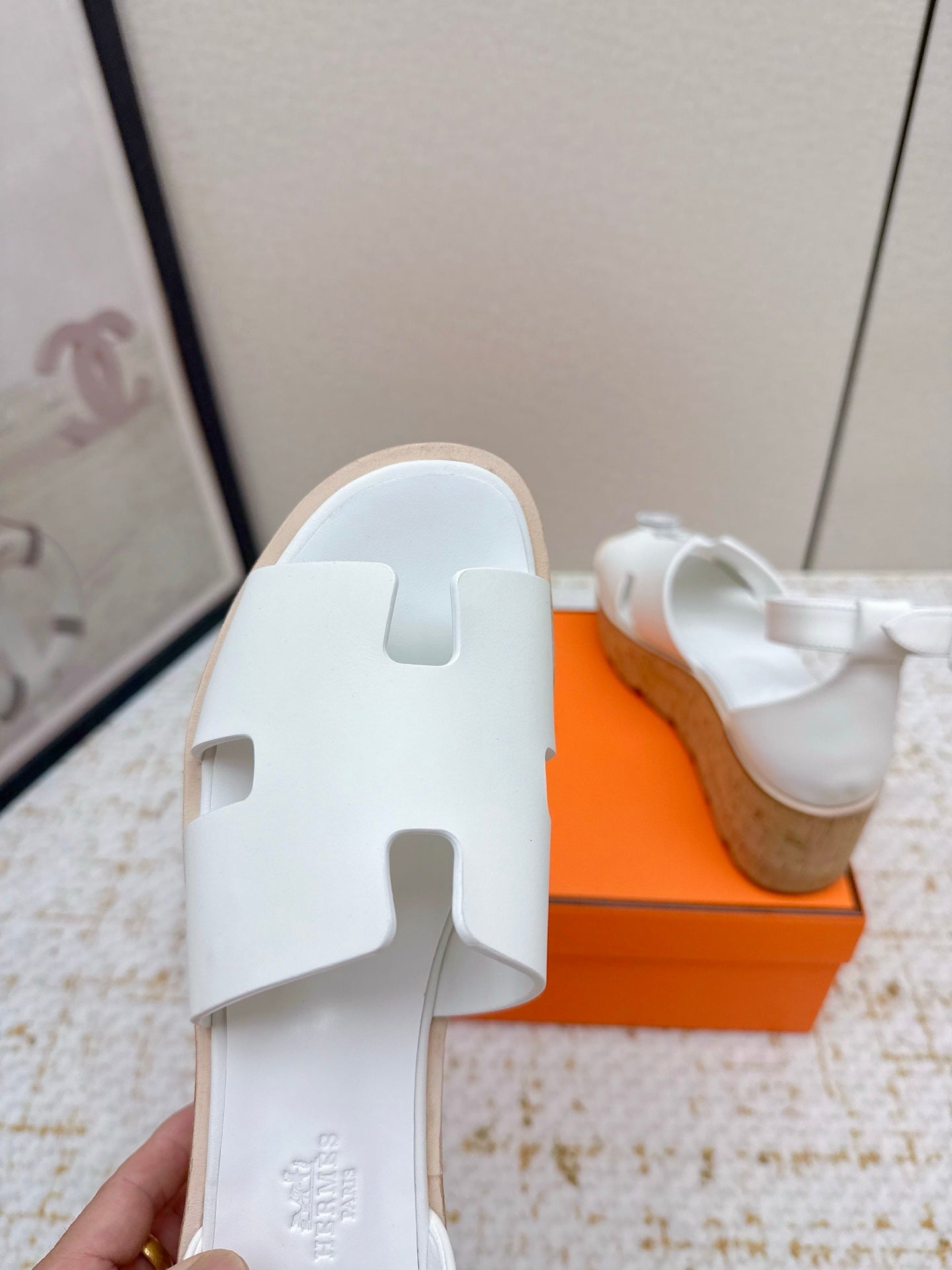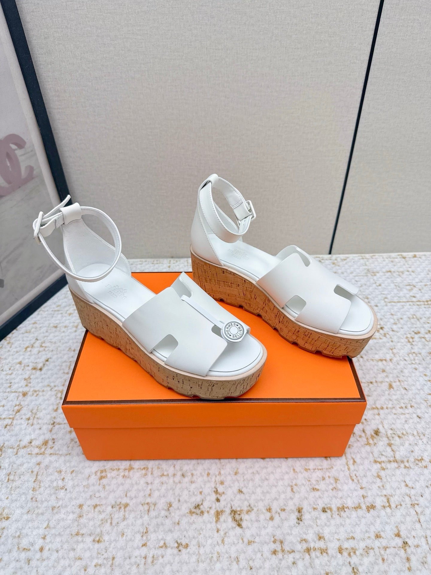 HM Luce 30 Sandal 65mm White Cowhide Cork 477968