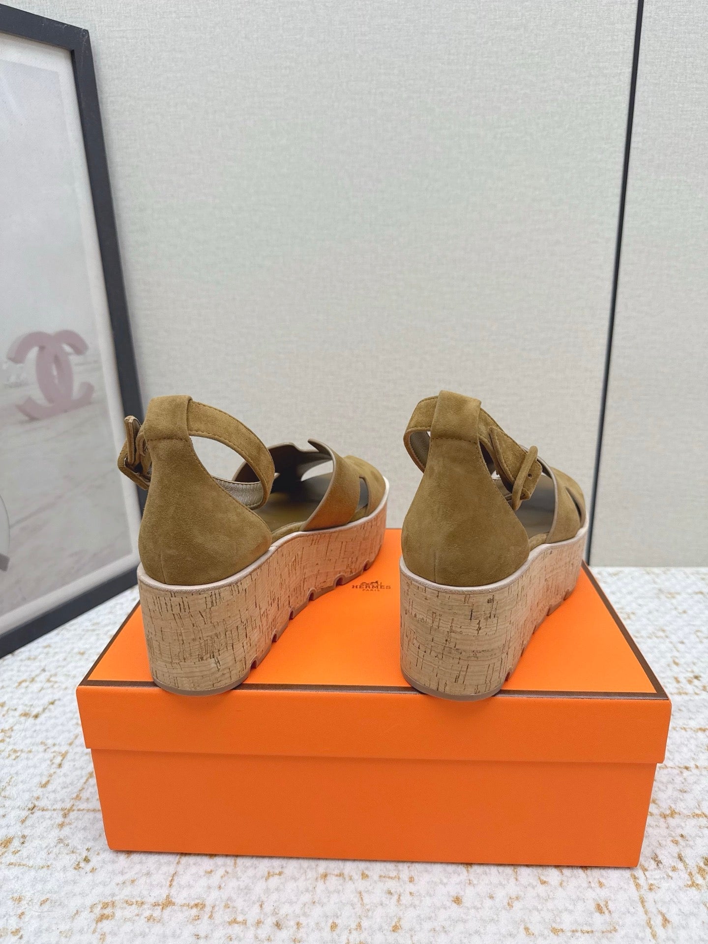 HM Luce 30 Sandal 65mm Amber Earth Suede Cork 477970