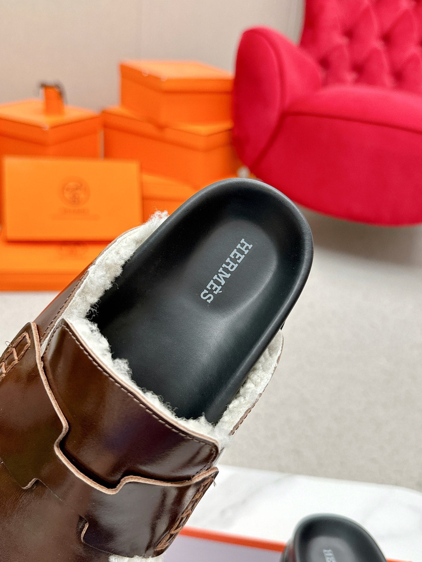 HM 25ss Oz Mule Brown Goatskin And Shearling 461944