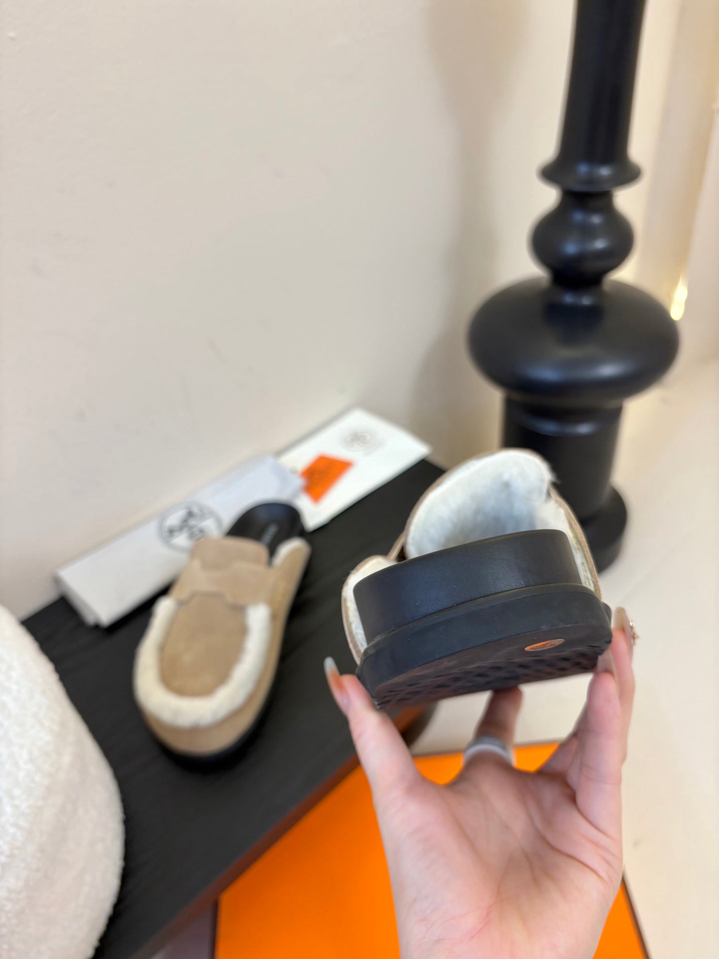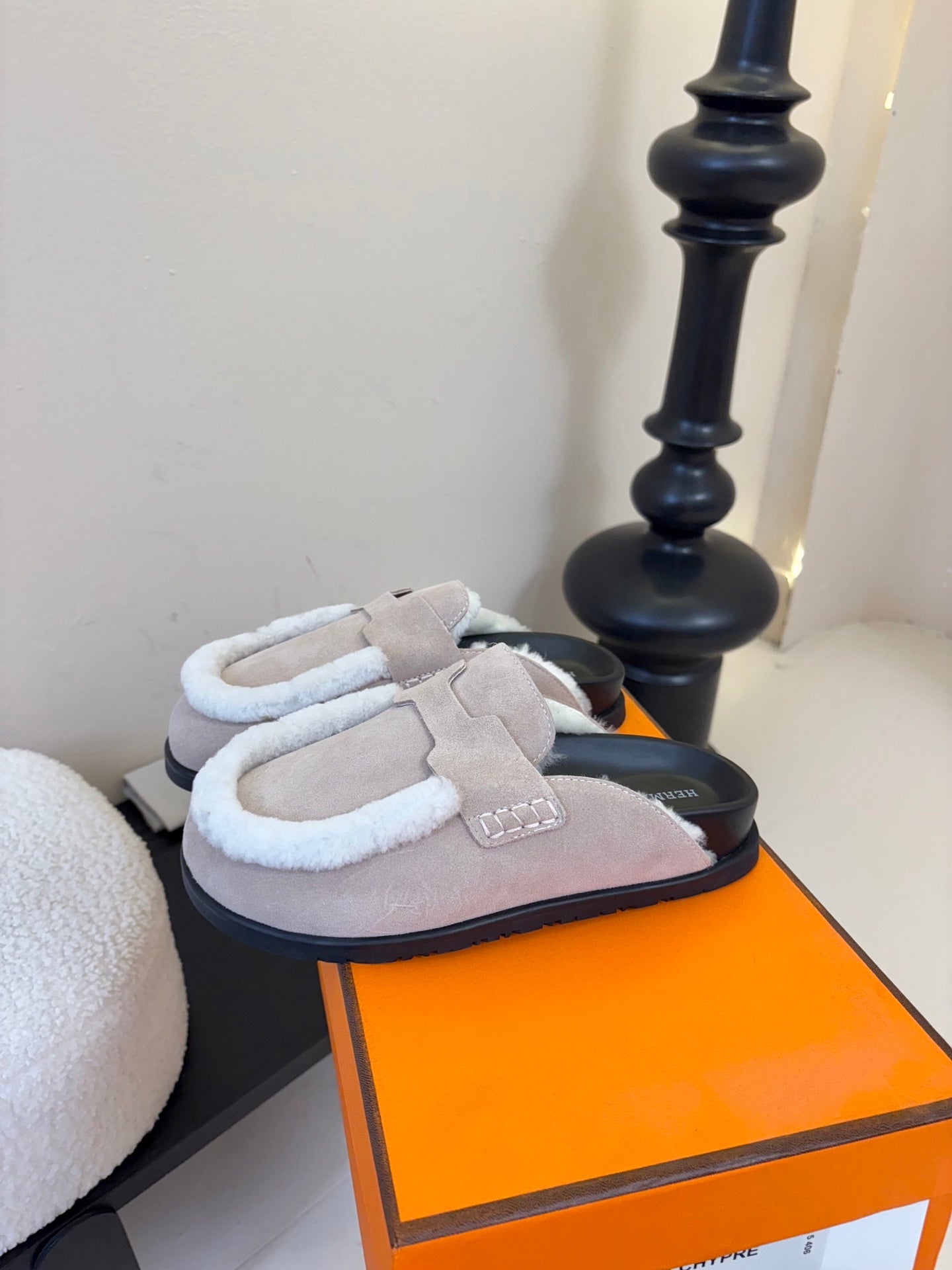 HM Go Mule Taupe Mix White Suede Lined With Wool Fleece 476594