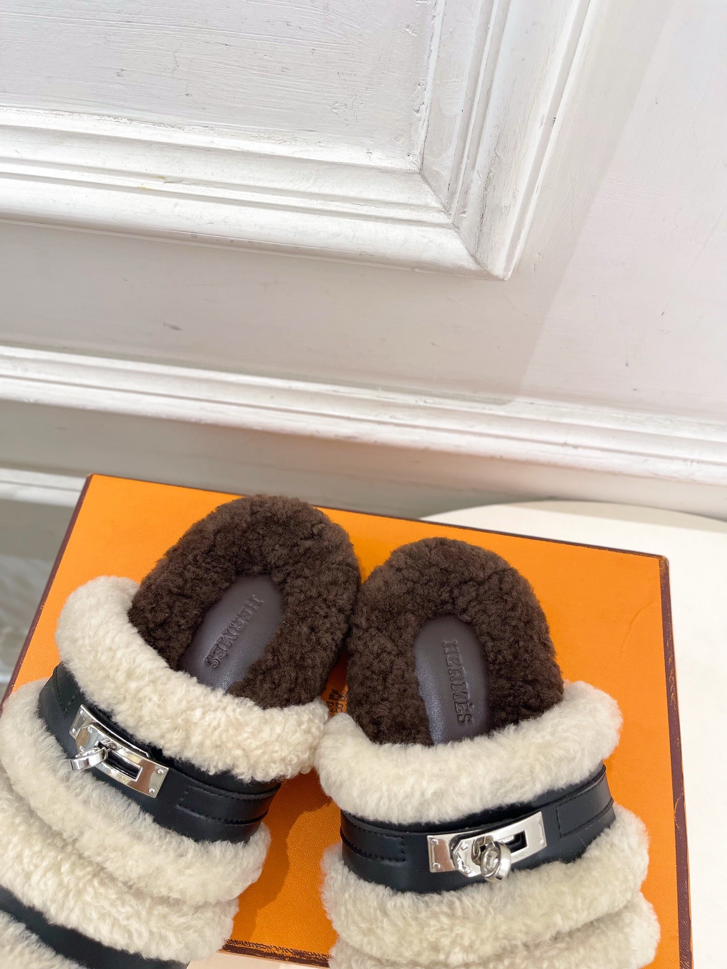 HM Go Mule Brown White Cowhide Lined With Wool Fleece 476588