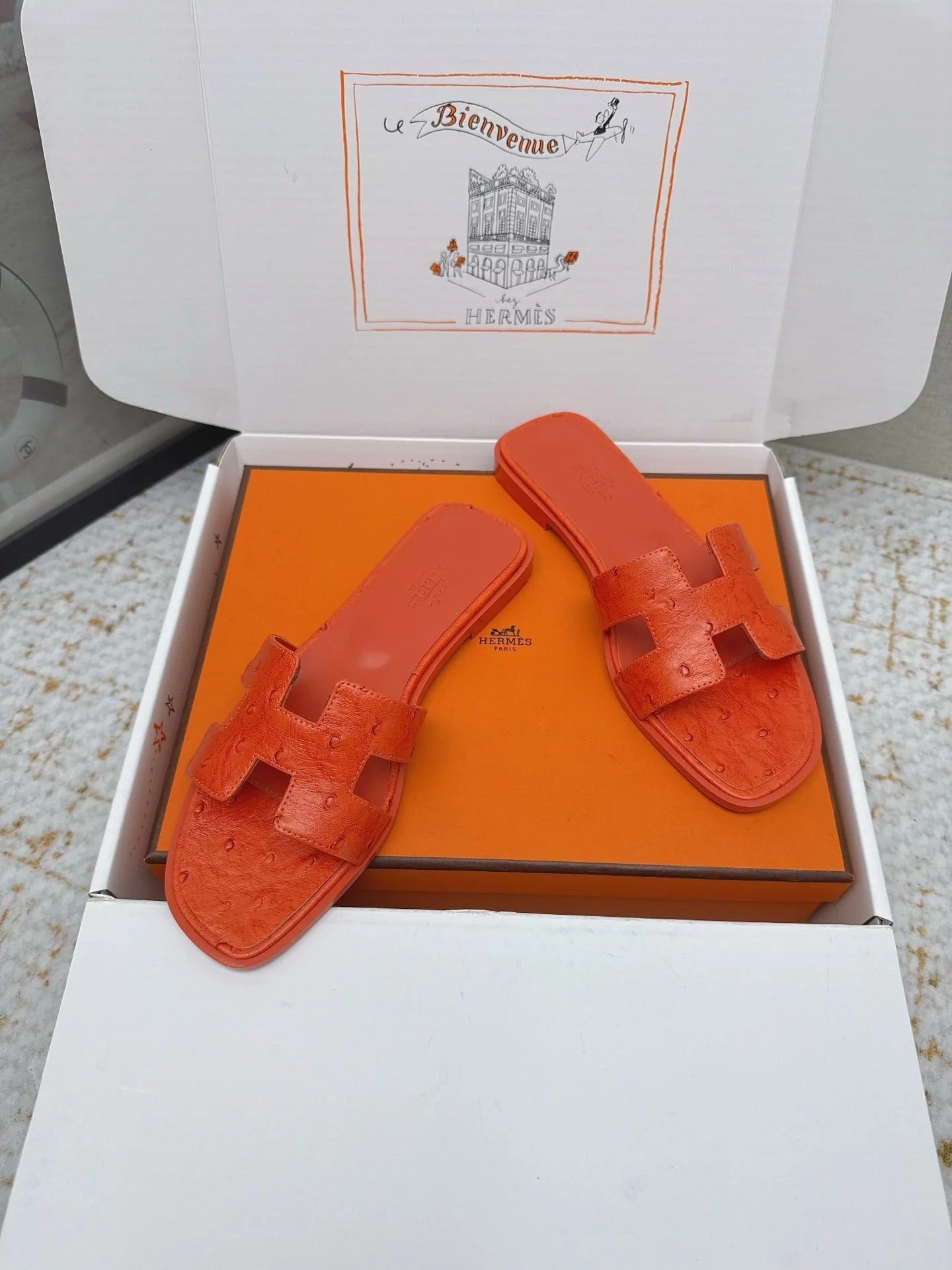 HM 26ss Oran Sandals 50 Orange Ostrich Leather 625125