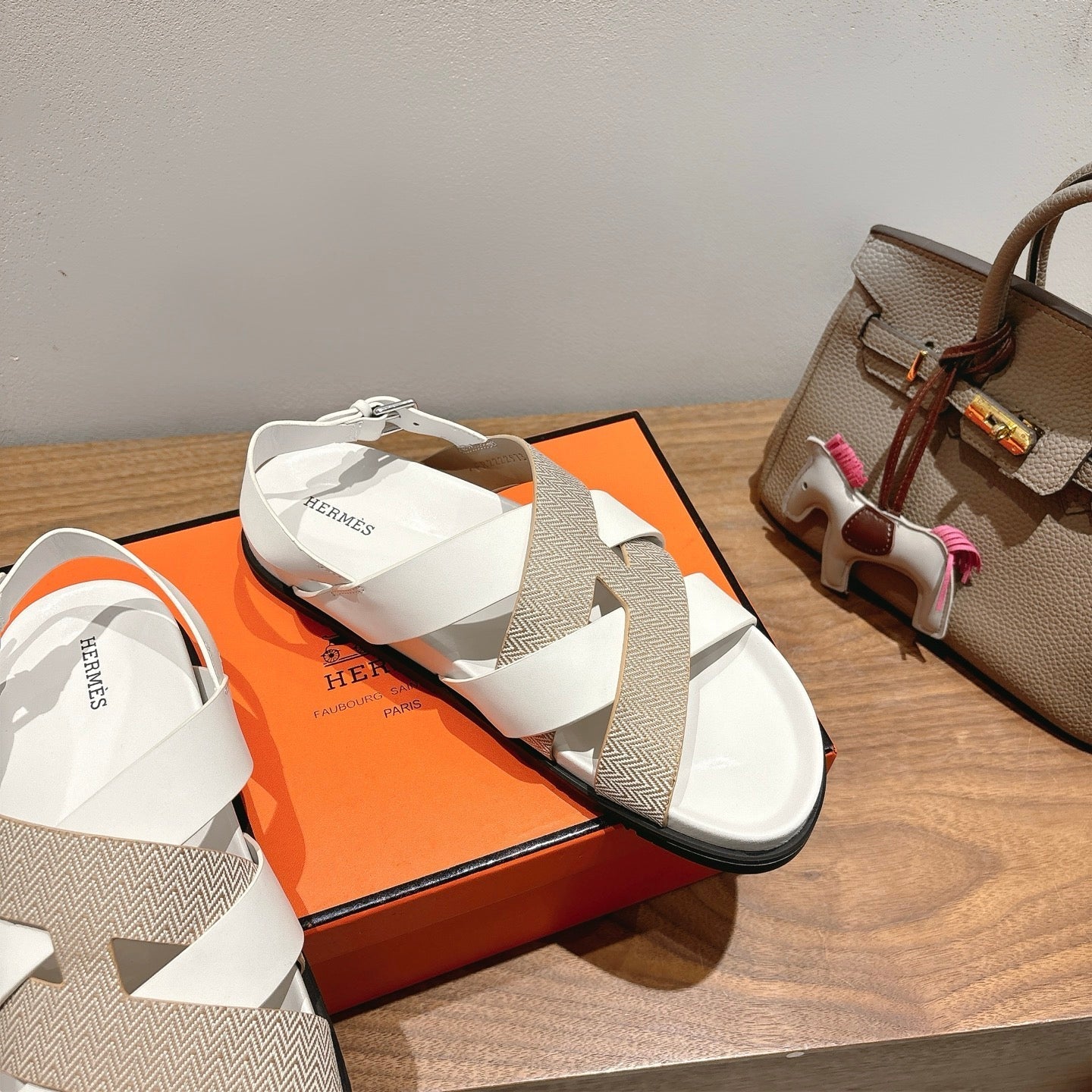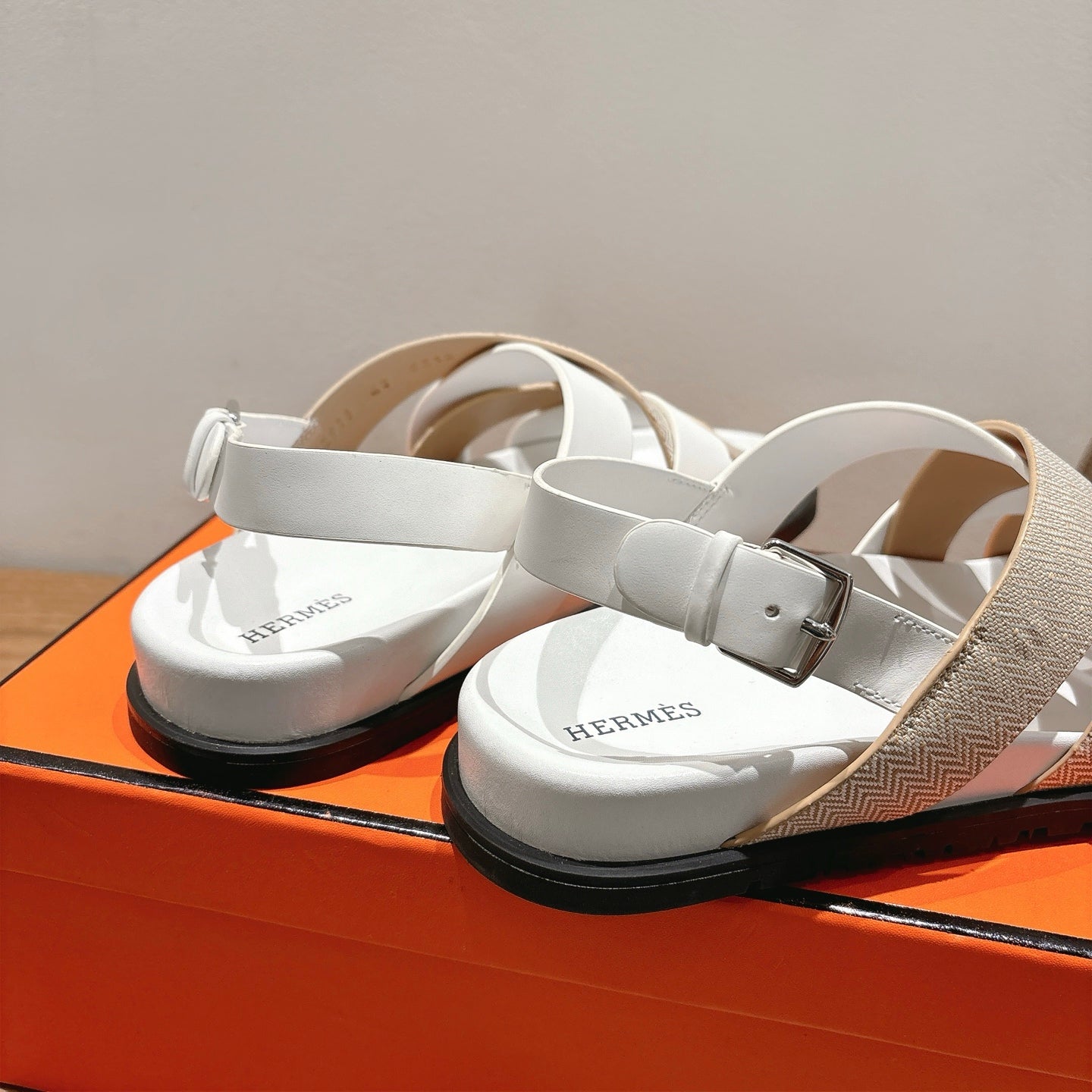 HM 25 Heracles Sandal White Calfskin Nude Canvas