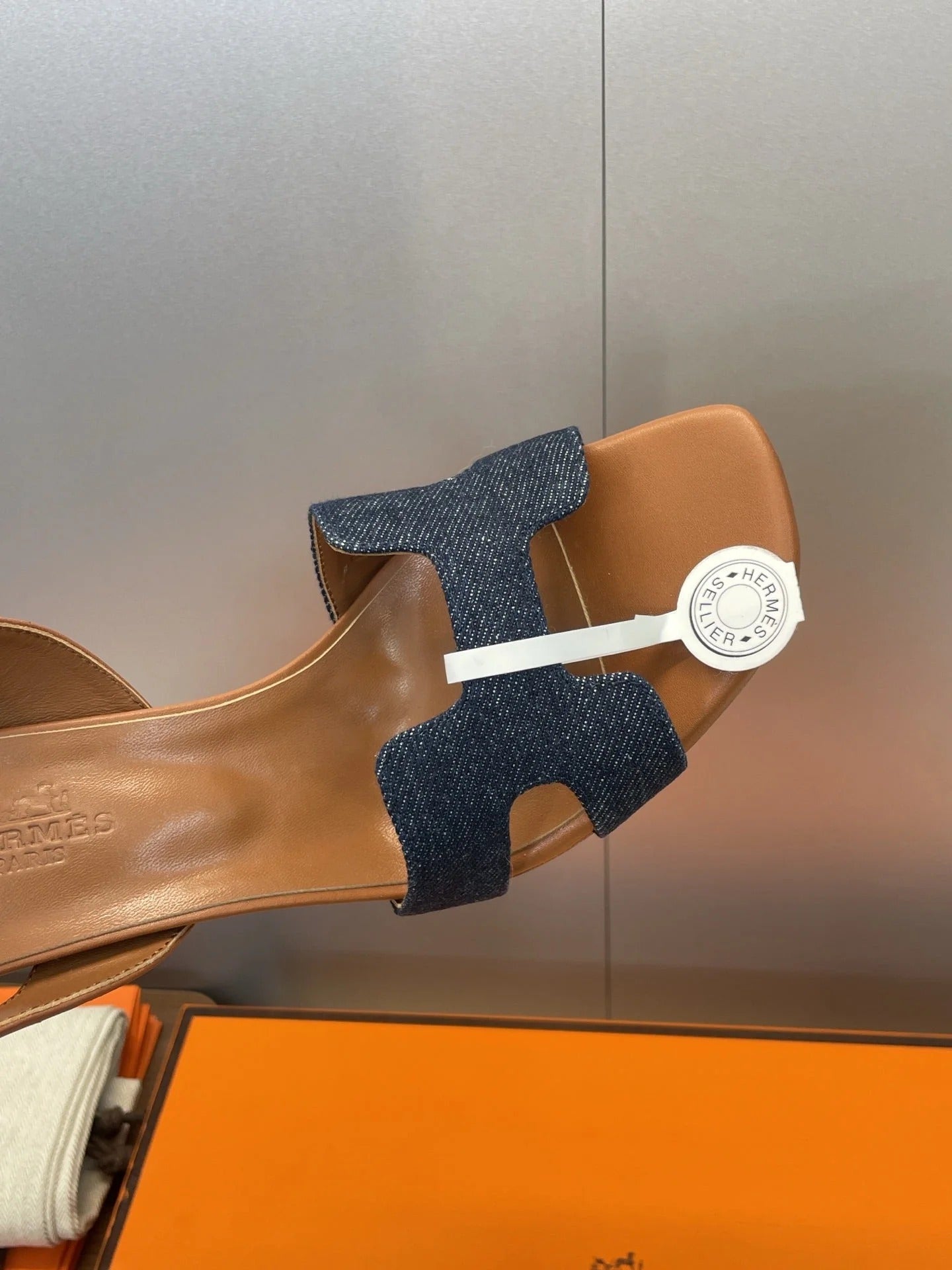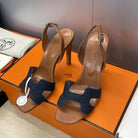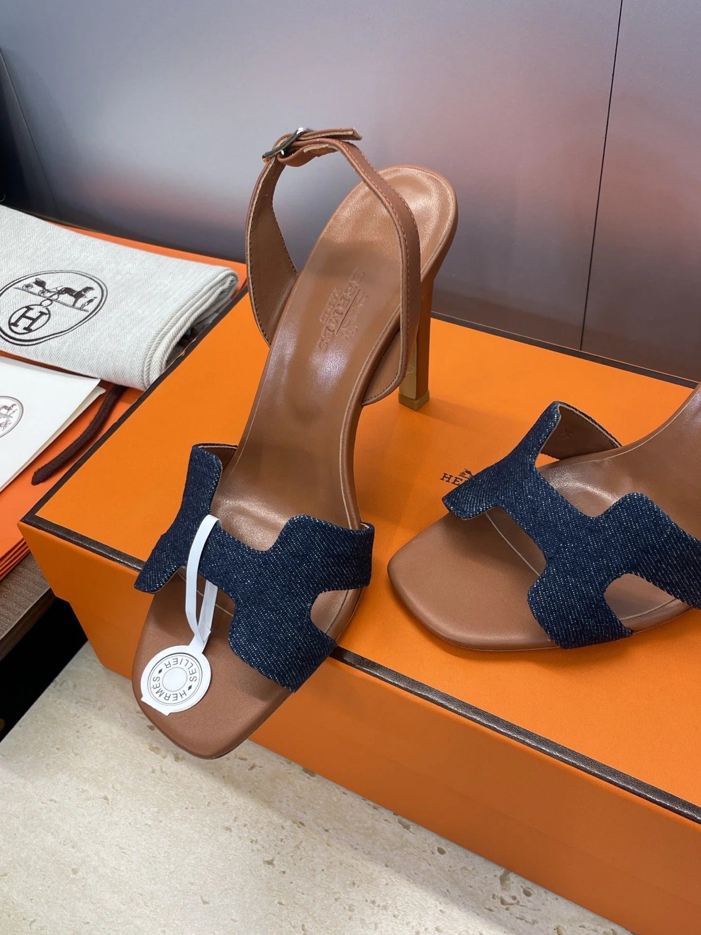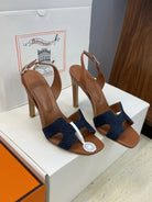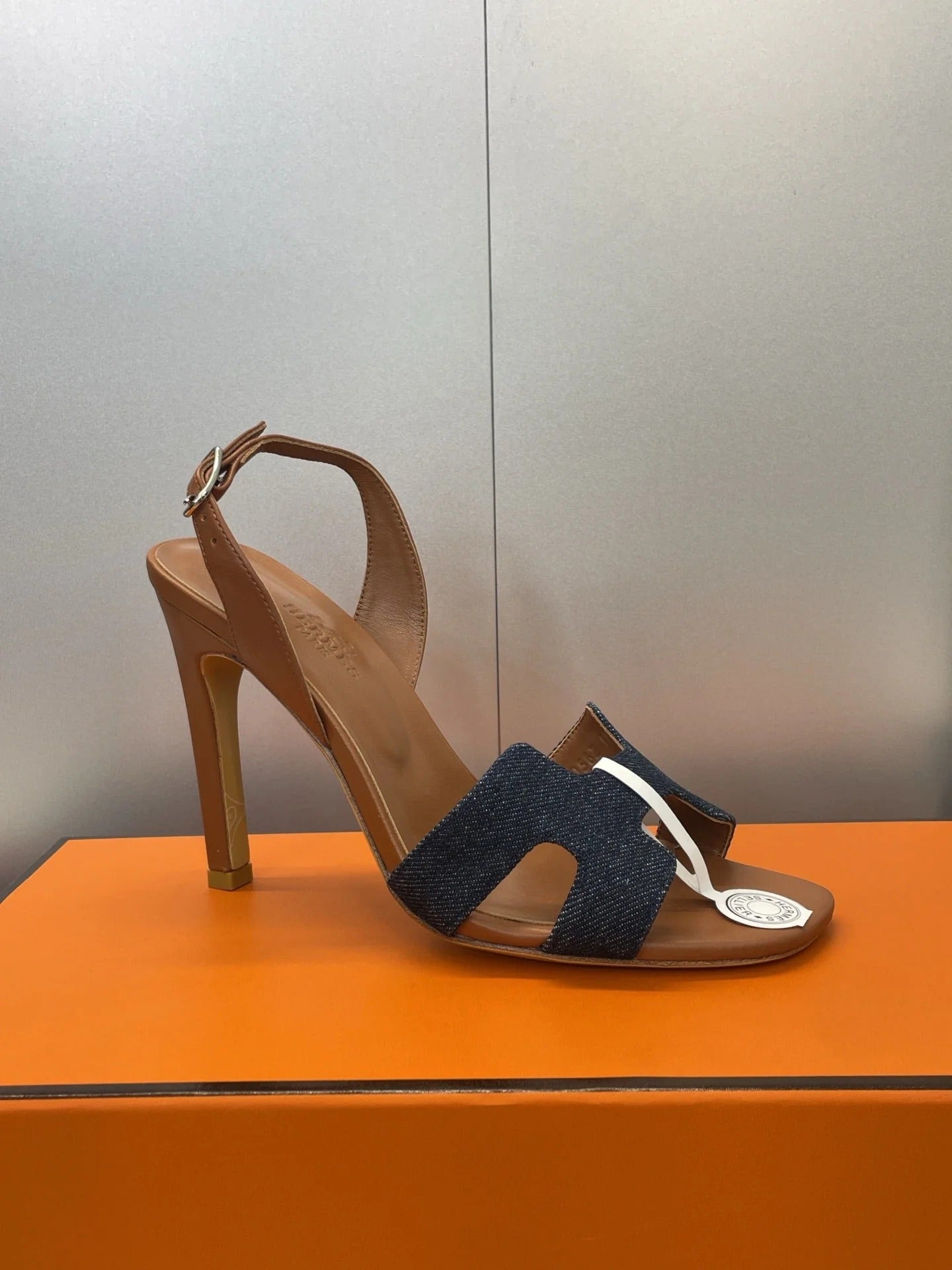HM 26ss High Heel Sandals 105 Brown Dark Blue Denim Cowhide 607148