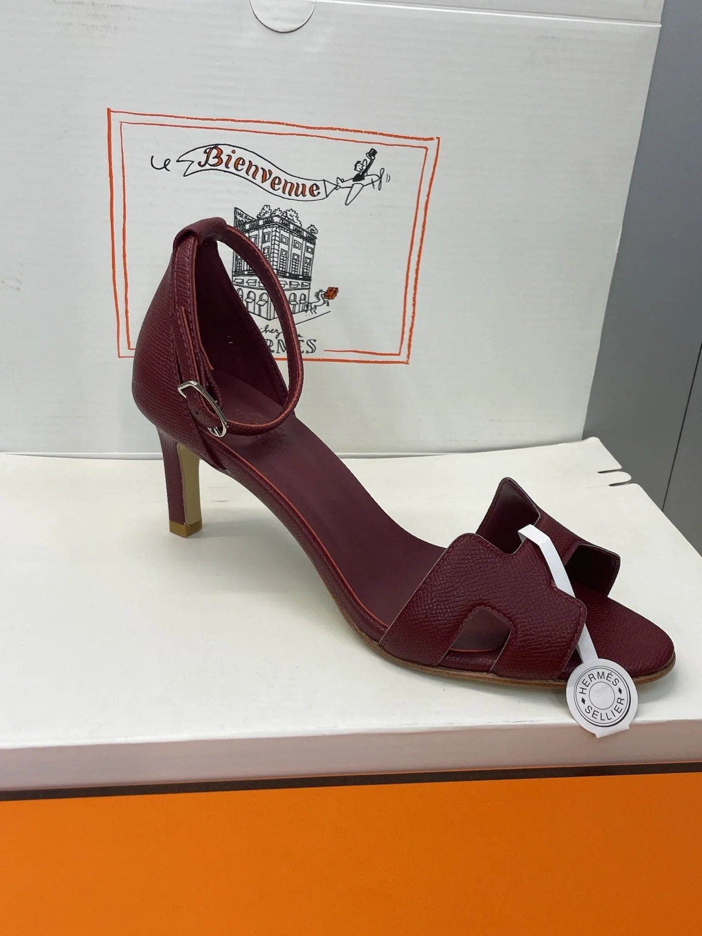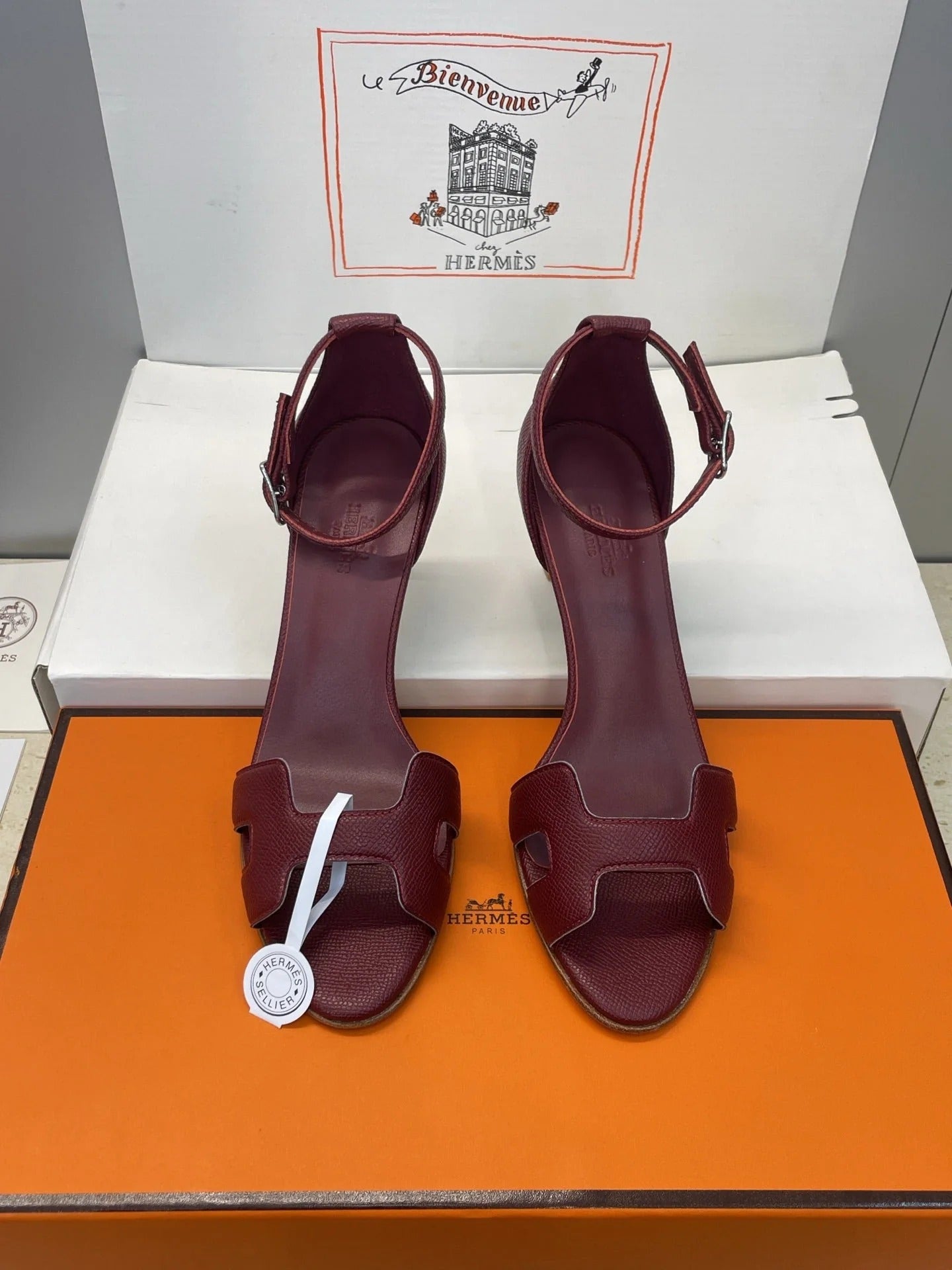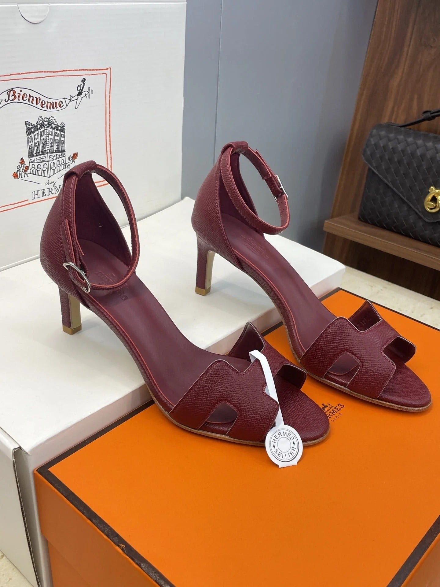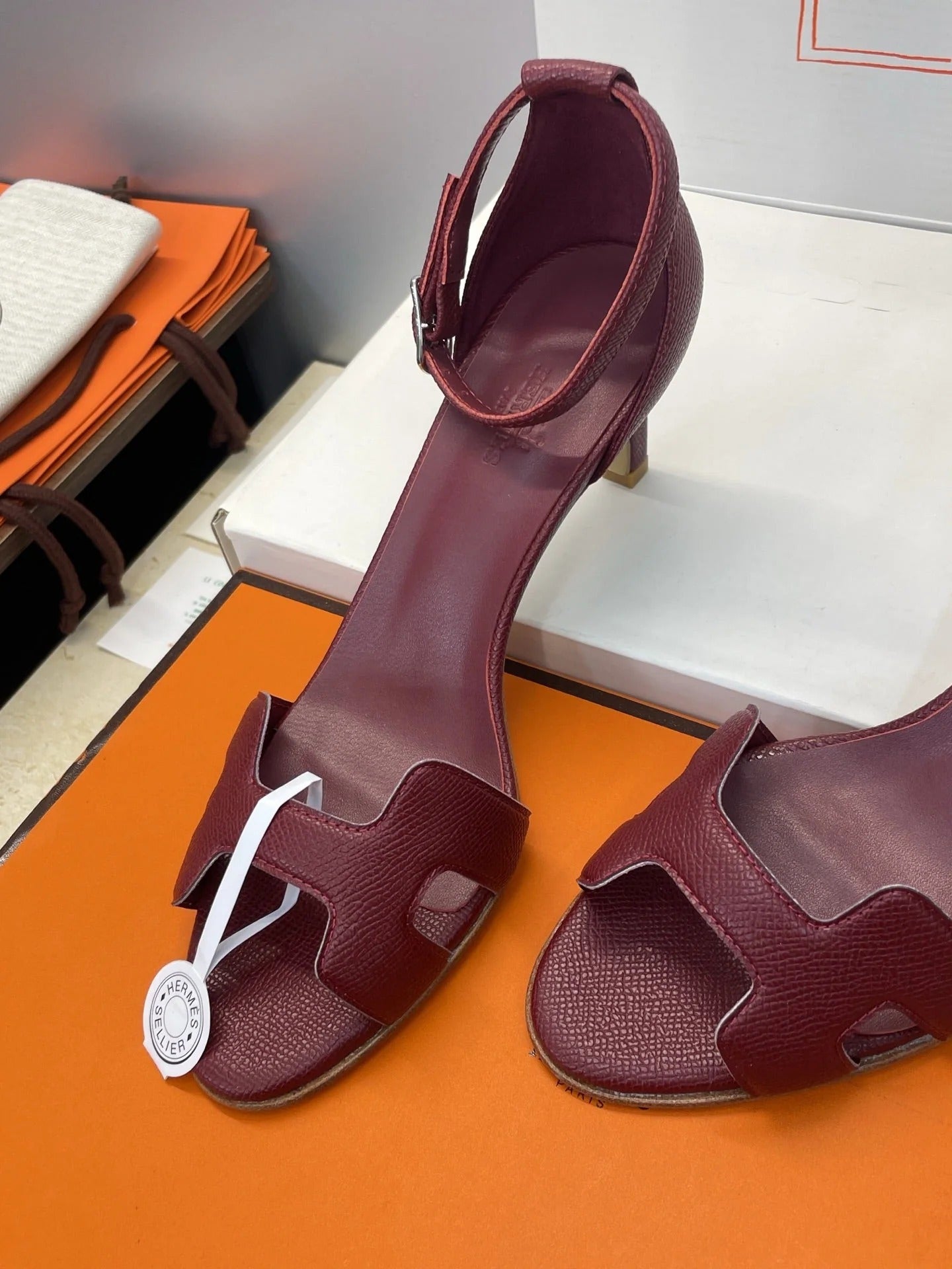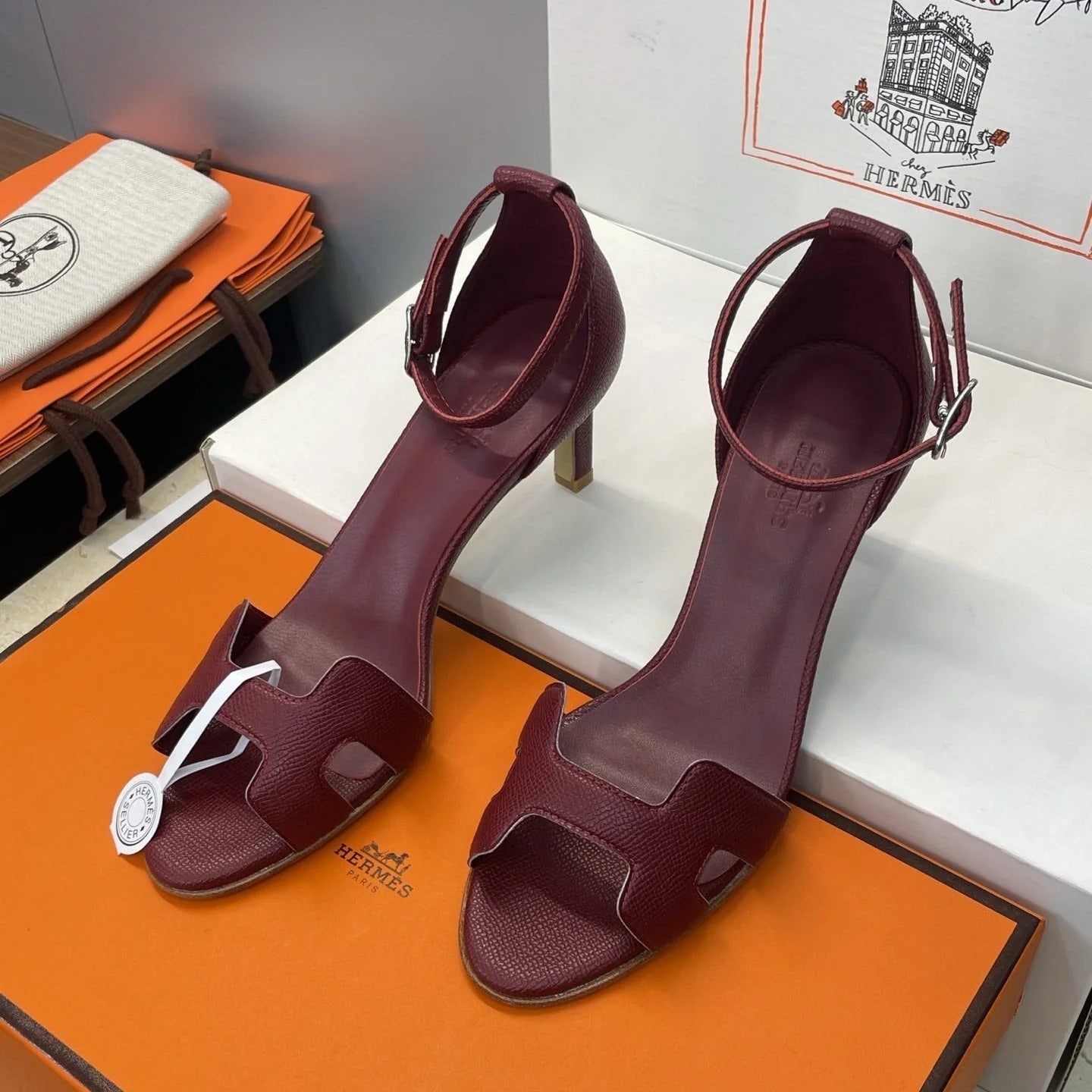 HM 26ss High Heel Sandals 70 Burgundy Cowhide 607120