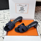 HM 26ss High-Heeled Sandals 50 Black Dark Blue Denim Cowhide 617222