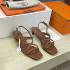 HM 26ss Kelly Sliver Buckle Sandals 40 Brown Calfskin 607164
