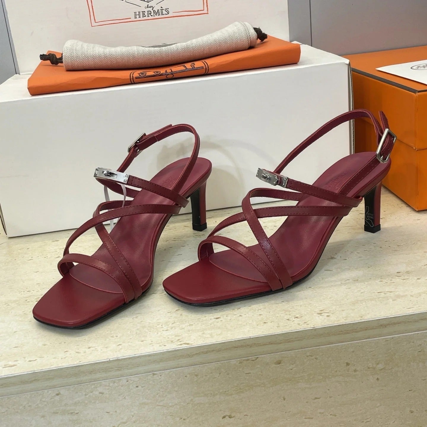 HM 26ss Kelly Sliver Buckle Sandals 65 Dark Red Calfskin 607174