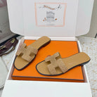 HM 26ss Oran Sandals Beige Gold Crystal Suede Cowhide 625254