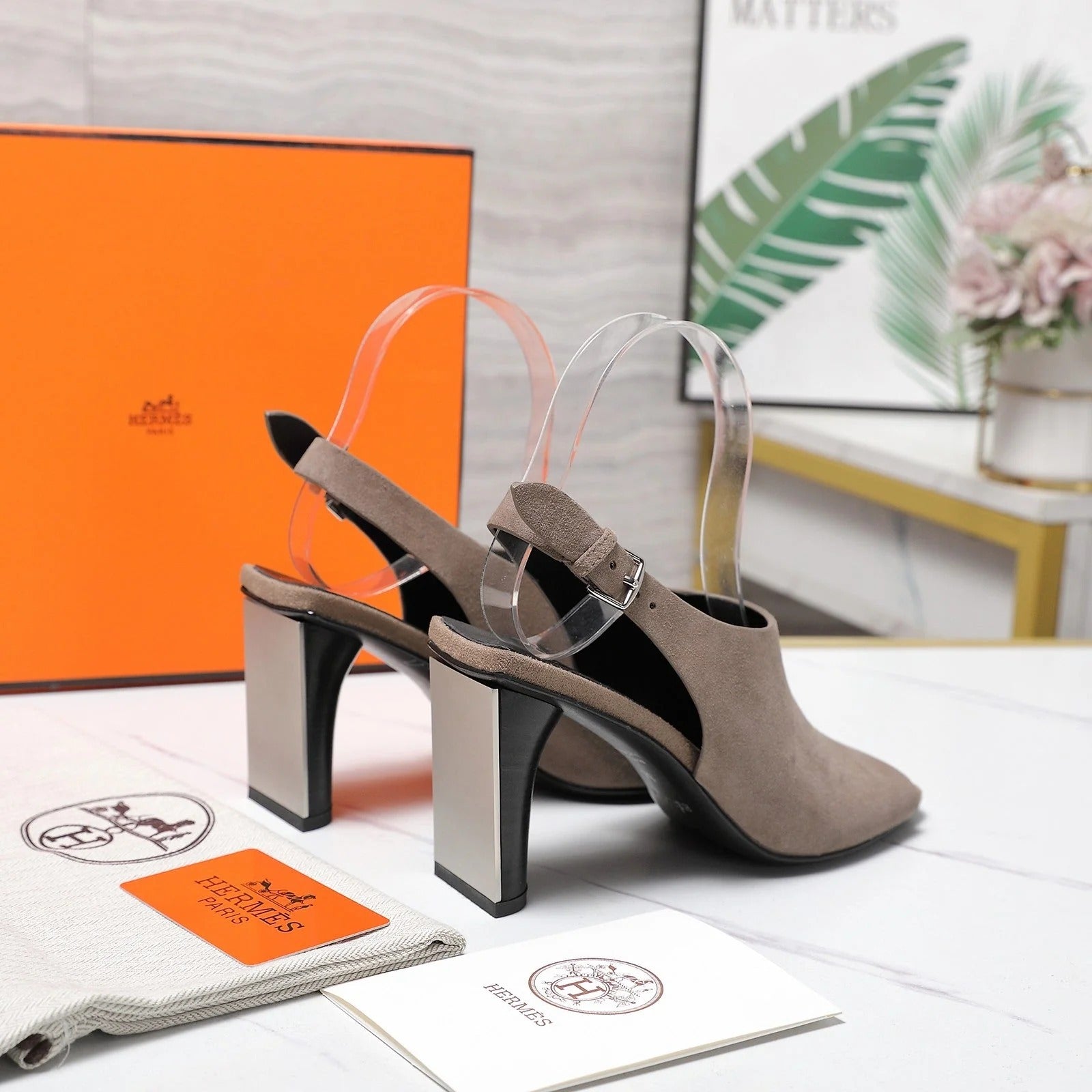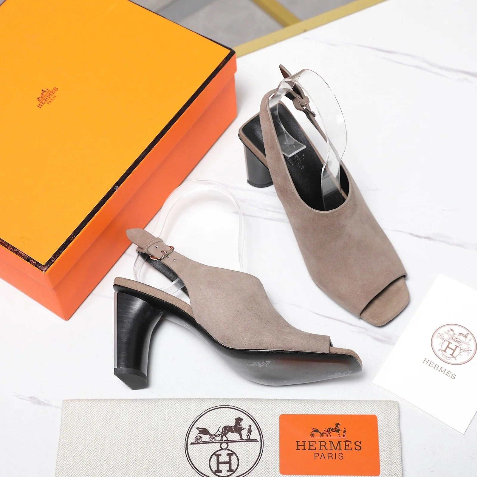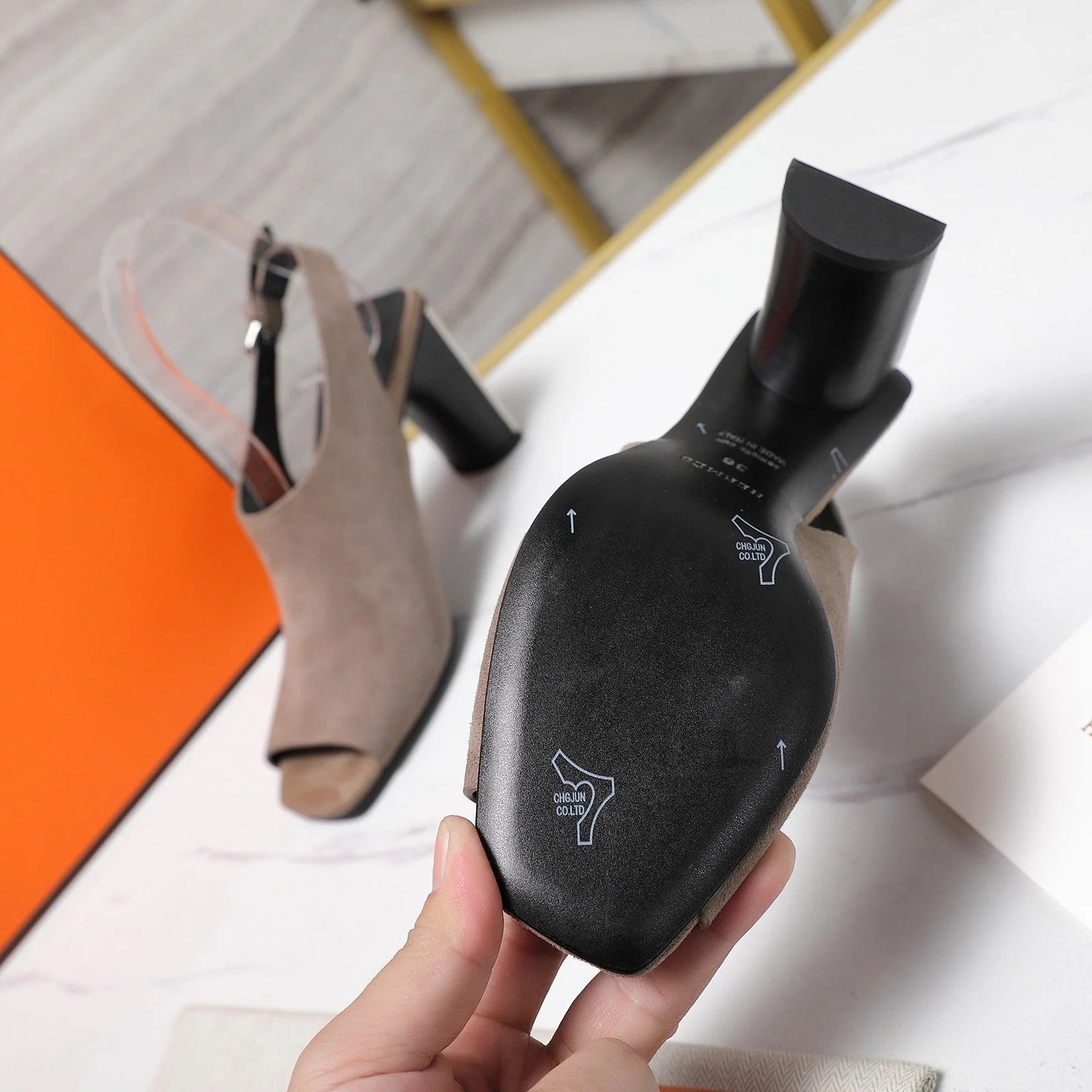 HM 26ss Peep-Toe Sandals 80 Taupe Suede 601241
