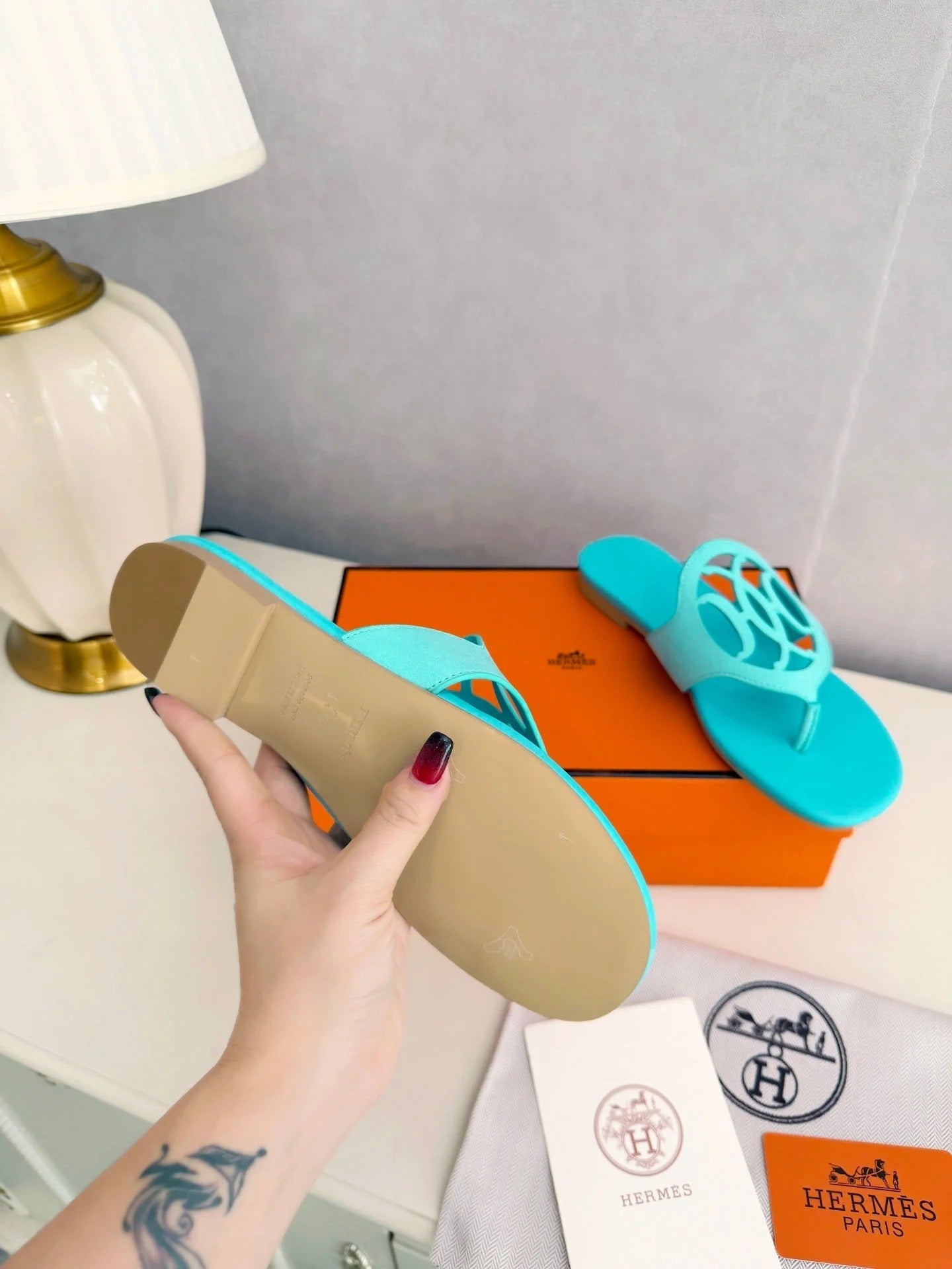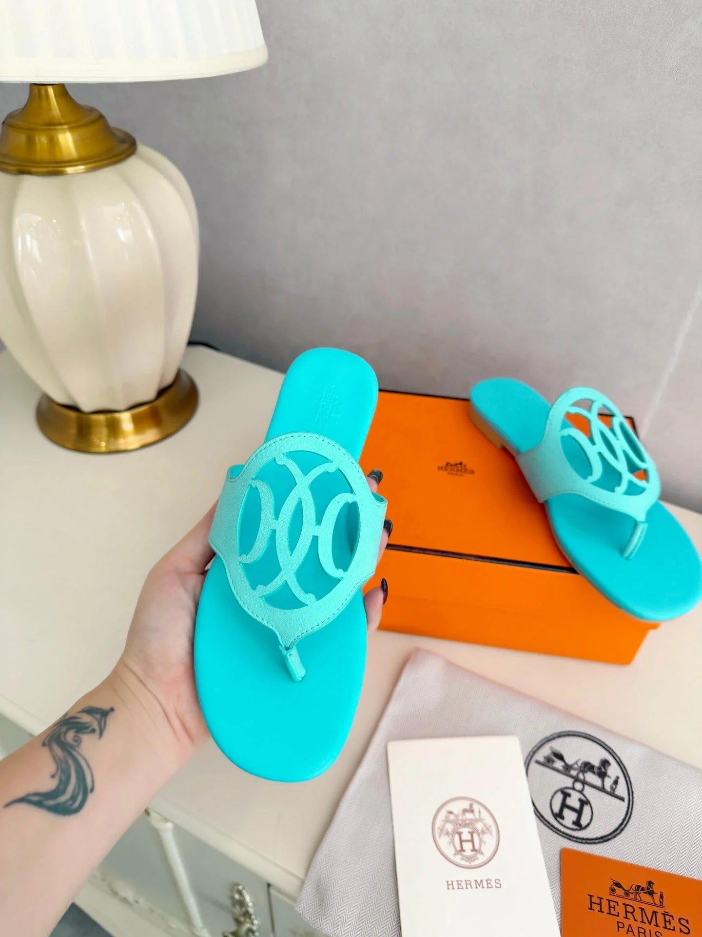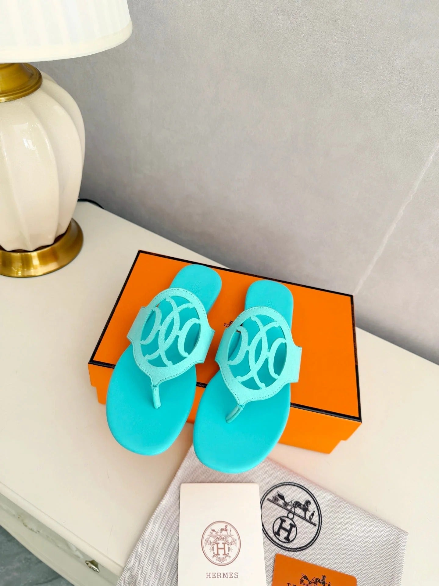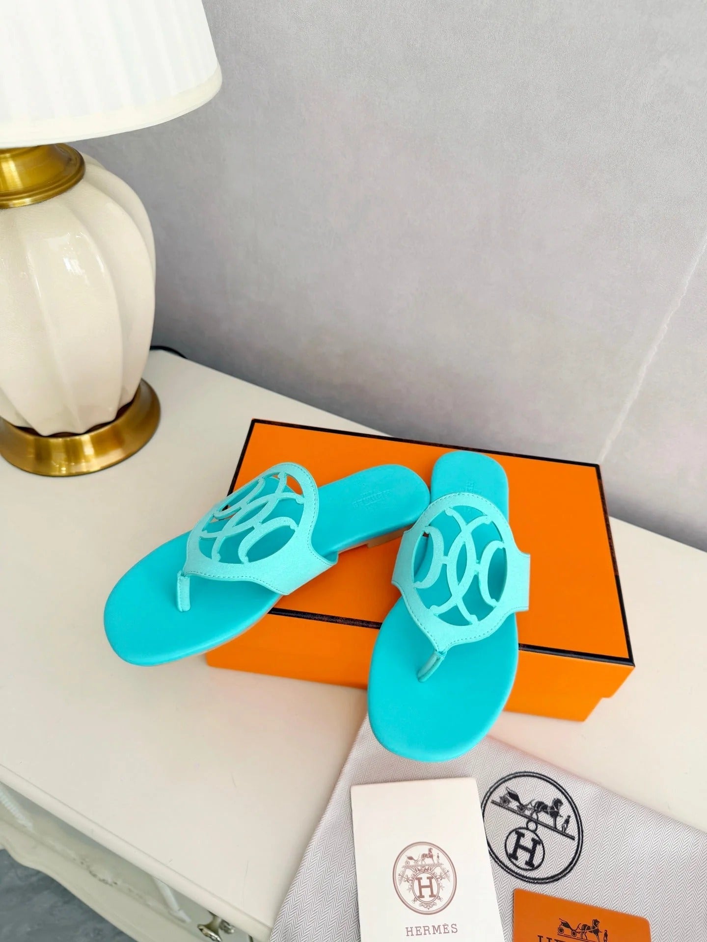 HM 26ss Pig-Nose Slipper Turquoise Leather 605904
