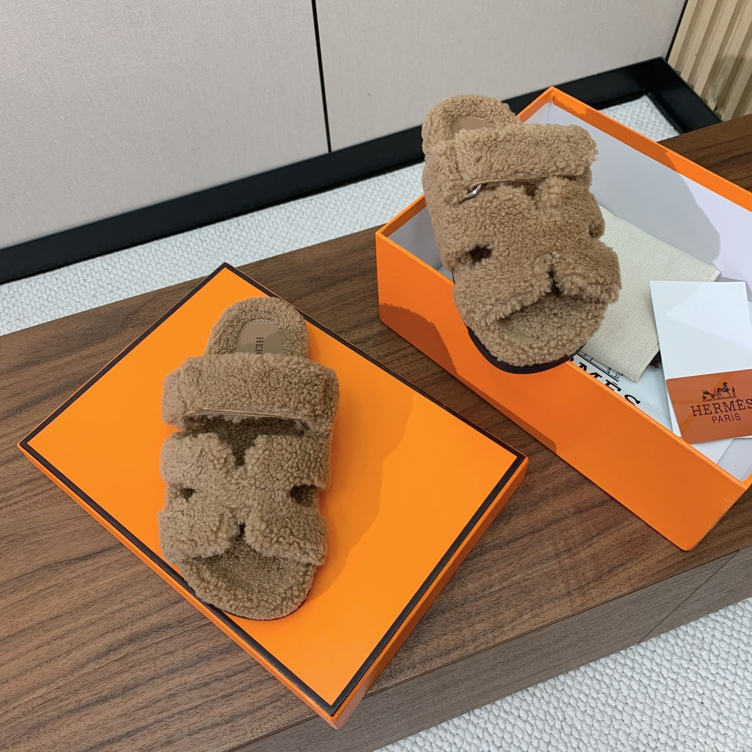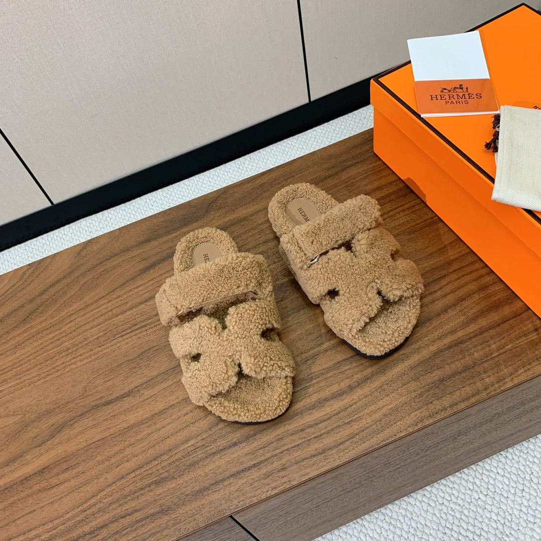 HM Chypre Sandal In Light Brown Lamb Wool 984186
