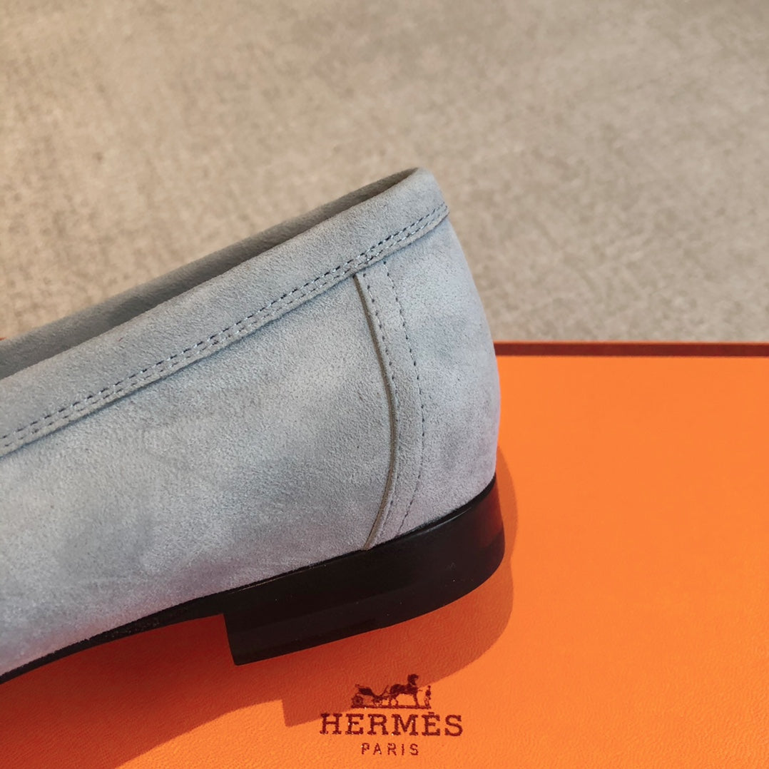 Paris Loafer Baby Blue Suede Calfskin With Signature Buckle 509349