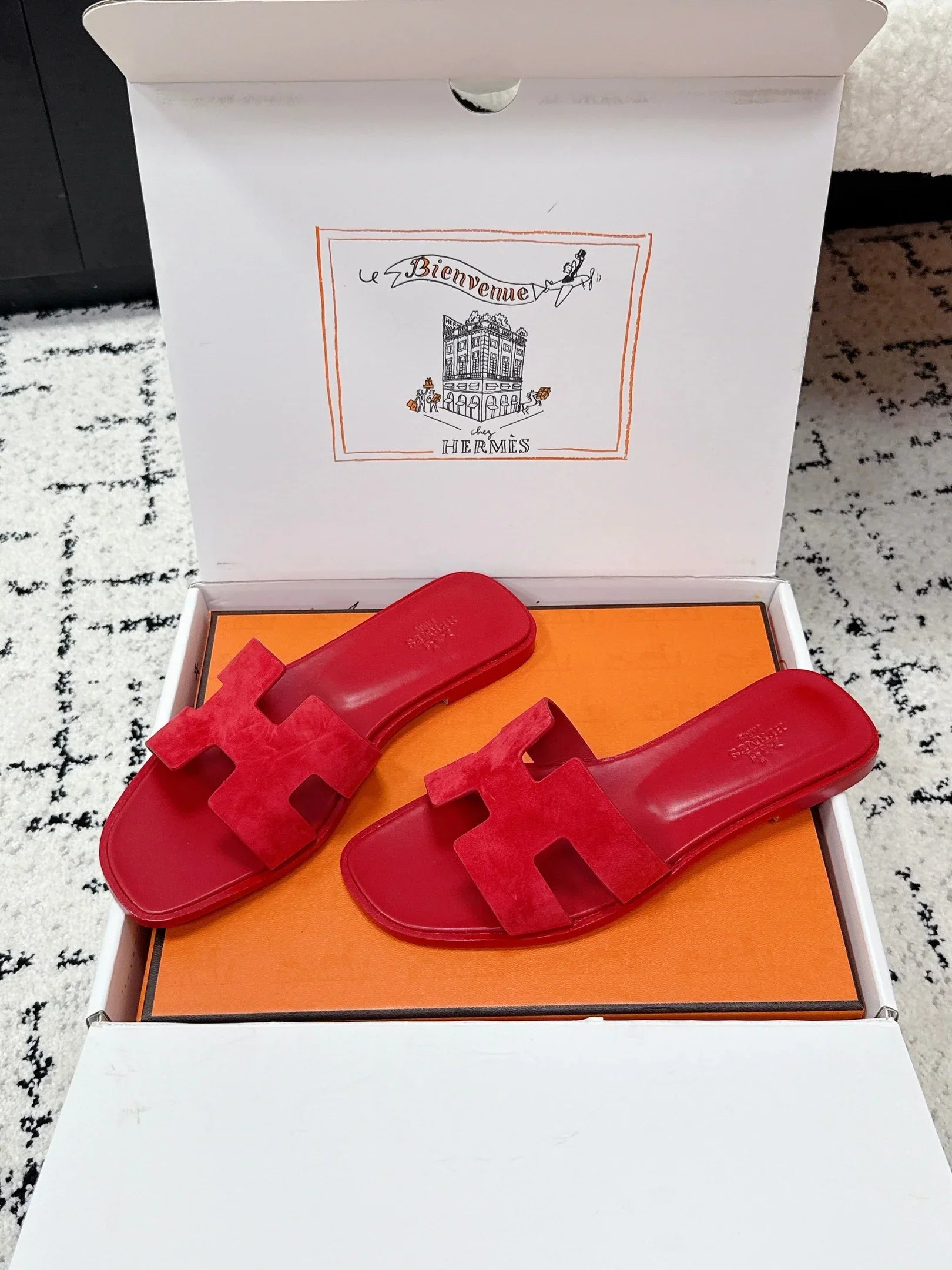 HM 26ss Oran Sandals Red Suede Cowhide 617190