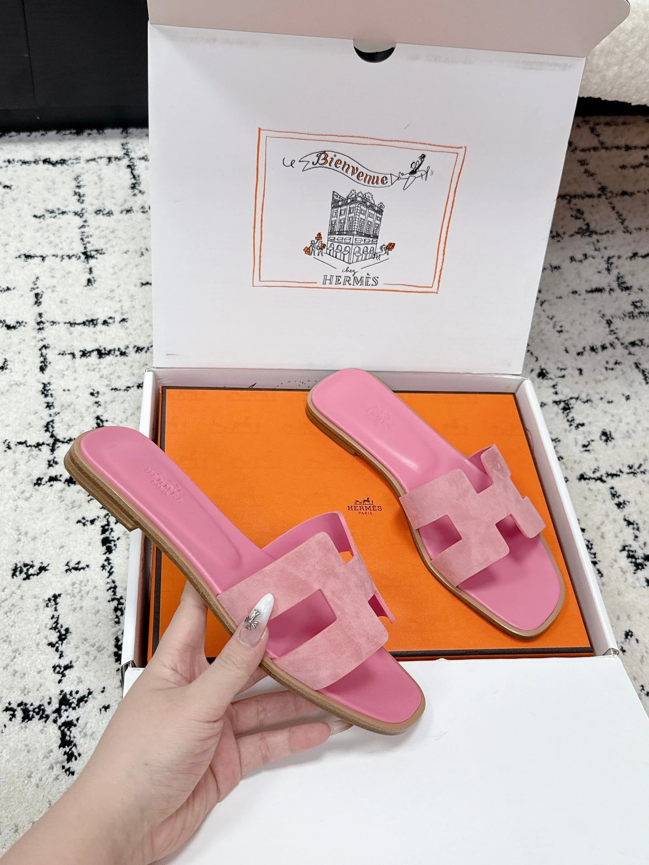 HM 26ss Oran Sandals Pink Suede Cowhide 617195