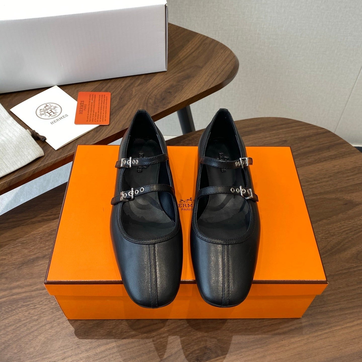 HM 25s Mary Jane Double Strap Black Calfskin 422565
