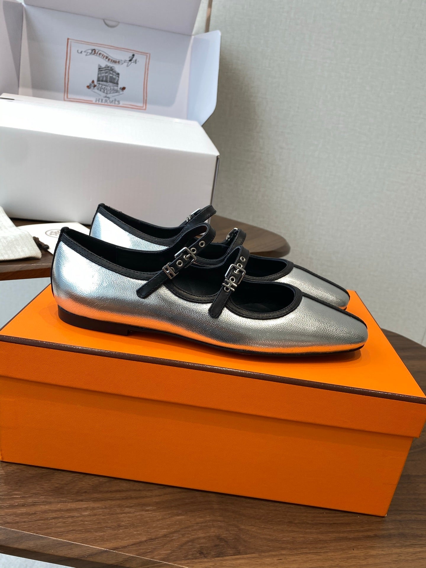 HM 25s Mary Jane Double strap Sliver Calfskin 422563