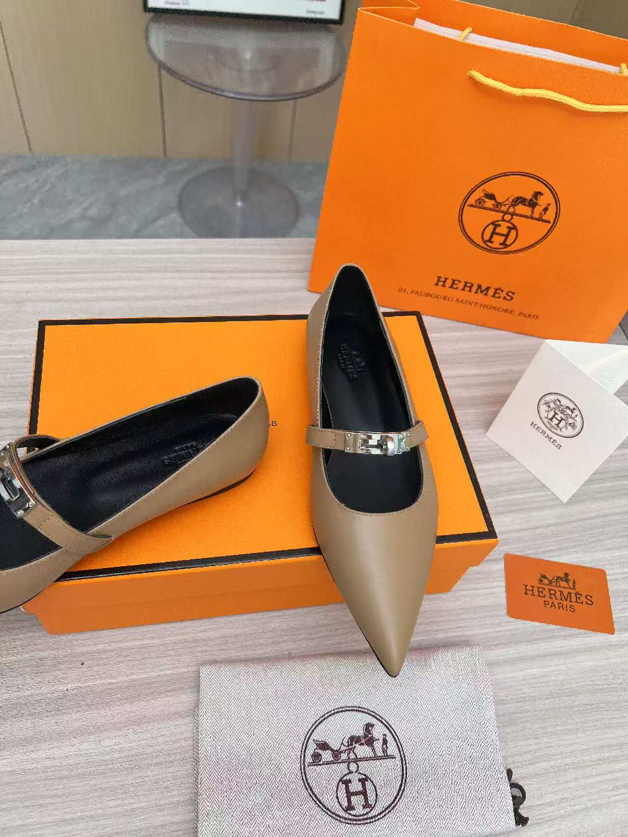 Kiara Slingback Flat Grey Calfskin 214056