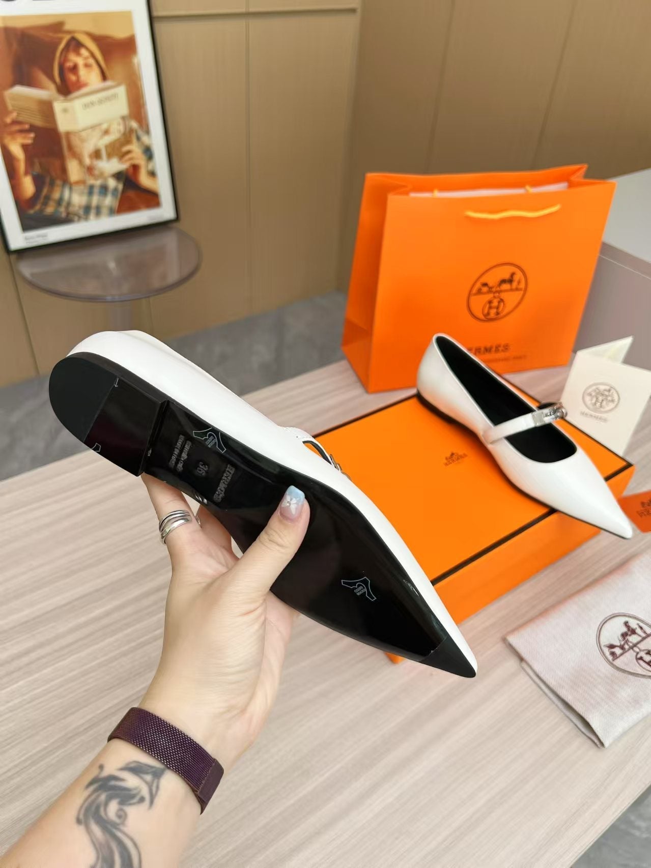 Kiara Slingback Flat White Calfskin 214057