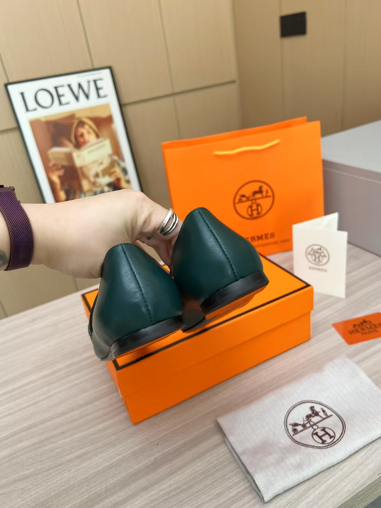 Kiara Slingback Flat Dark Green Calfskin 214058