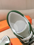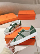 HM 25ss Kelly Buckle Sneakers Green Gray Cowhide Canvas 577492
