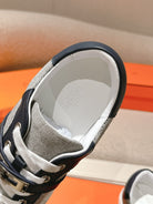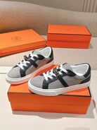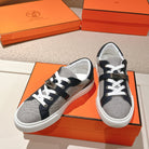 HM 25ss Kelly Buckle Sneakers Navy Blue Gray Cowhide Canvas 577489