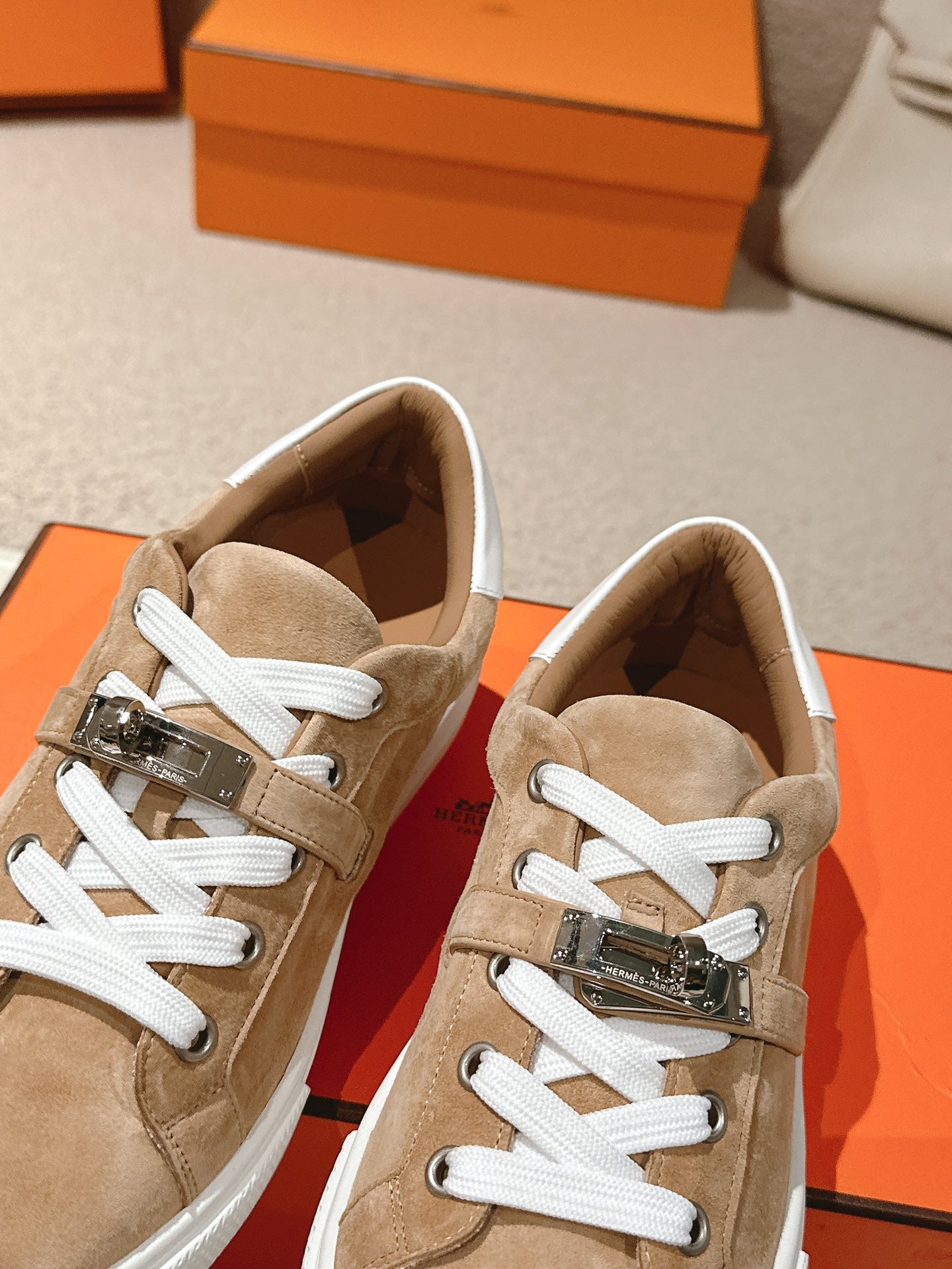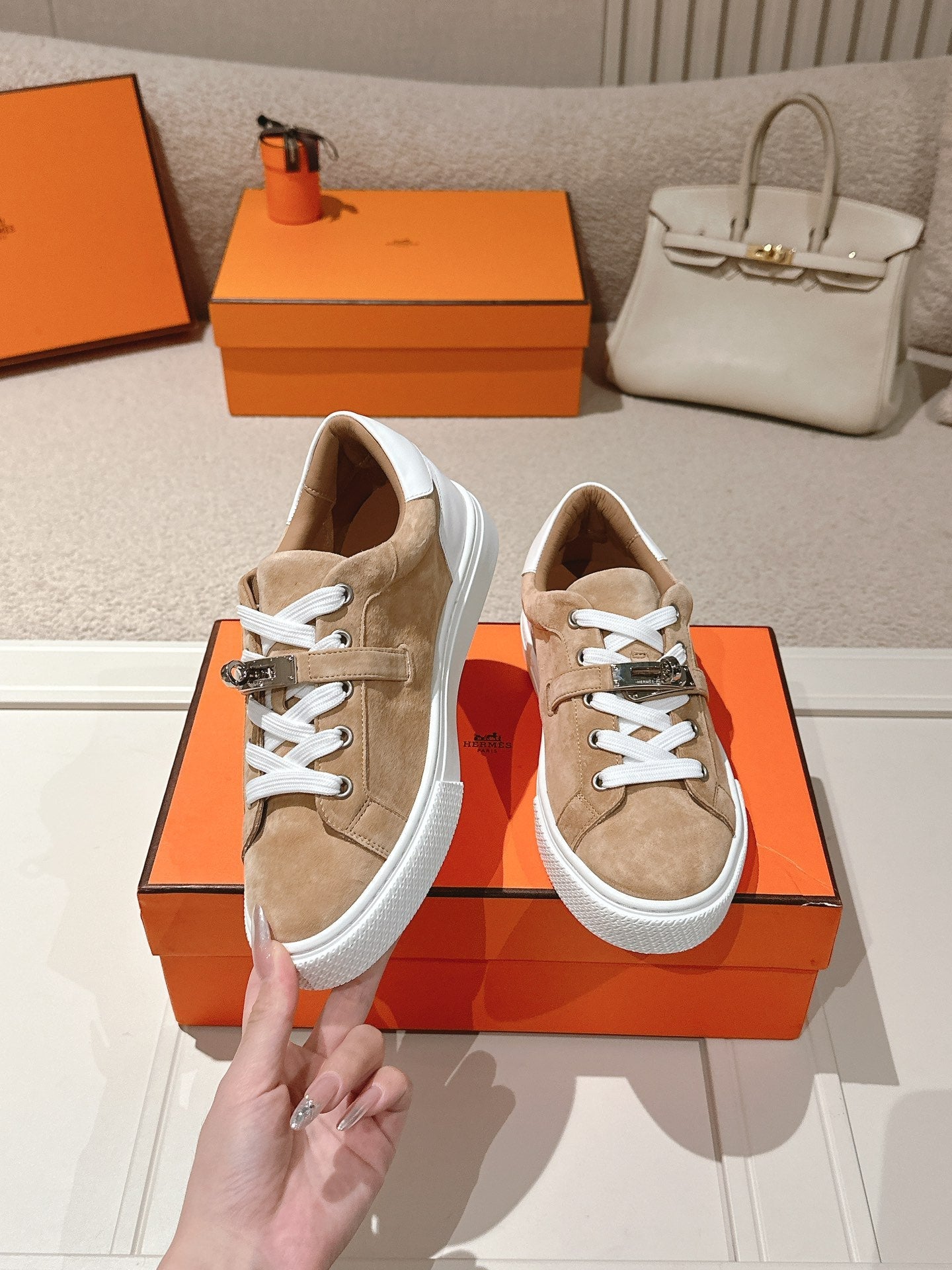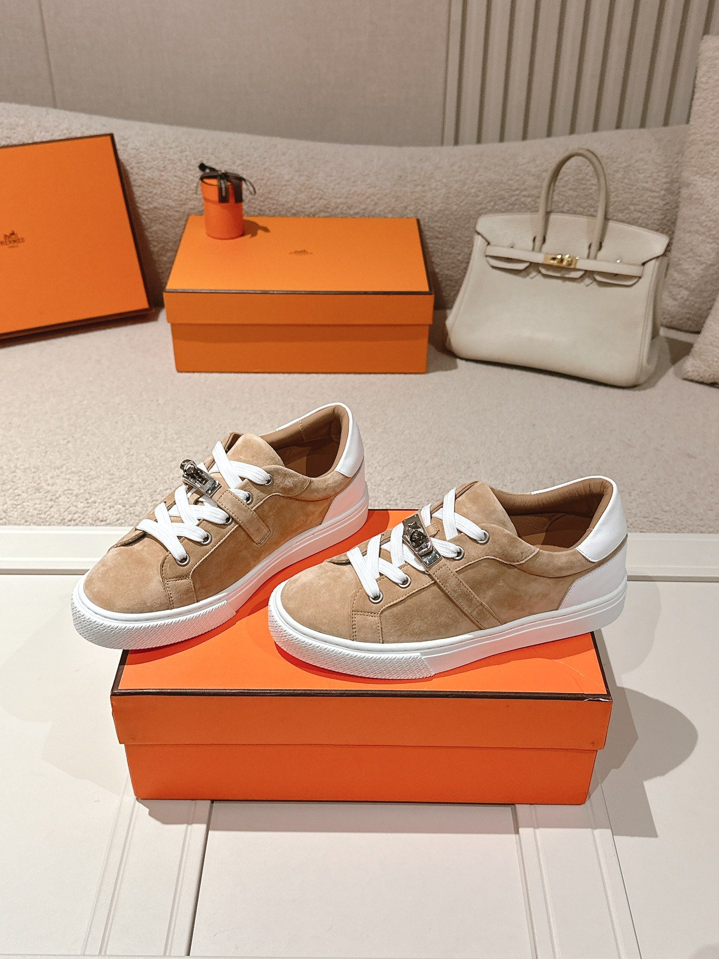 HM Day Sneakers White Brown Suede Calfskin 577512