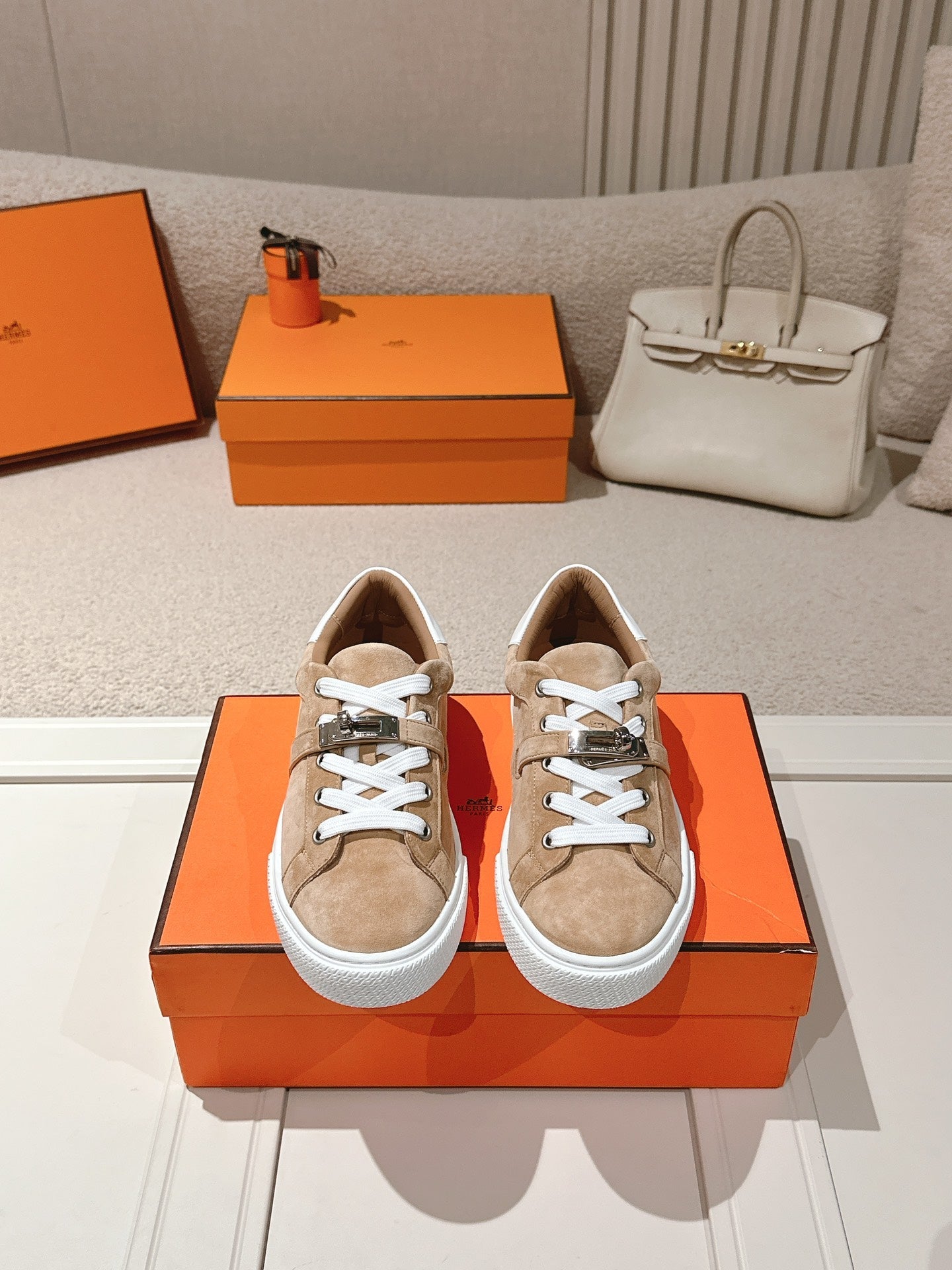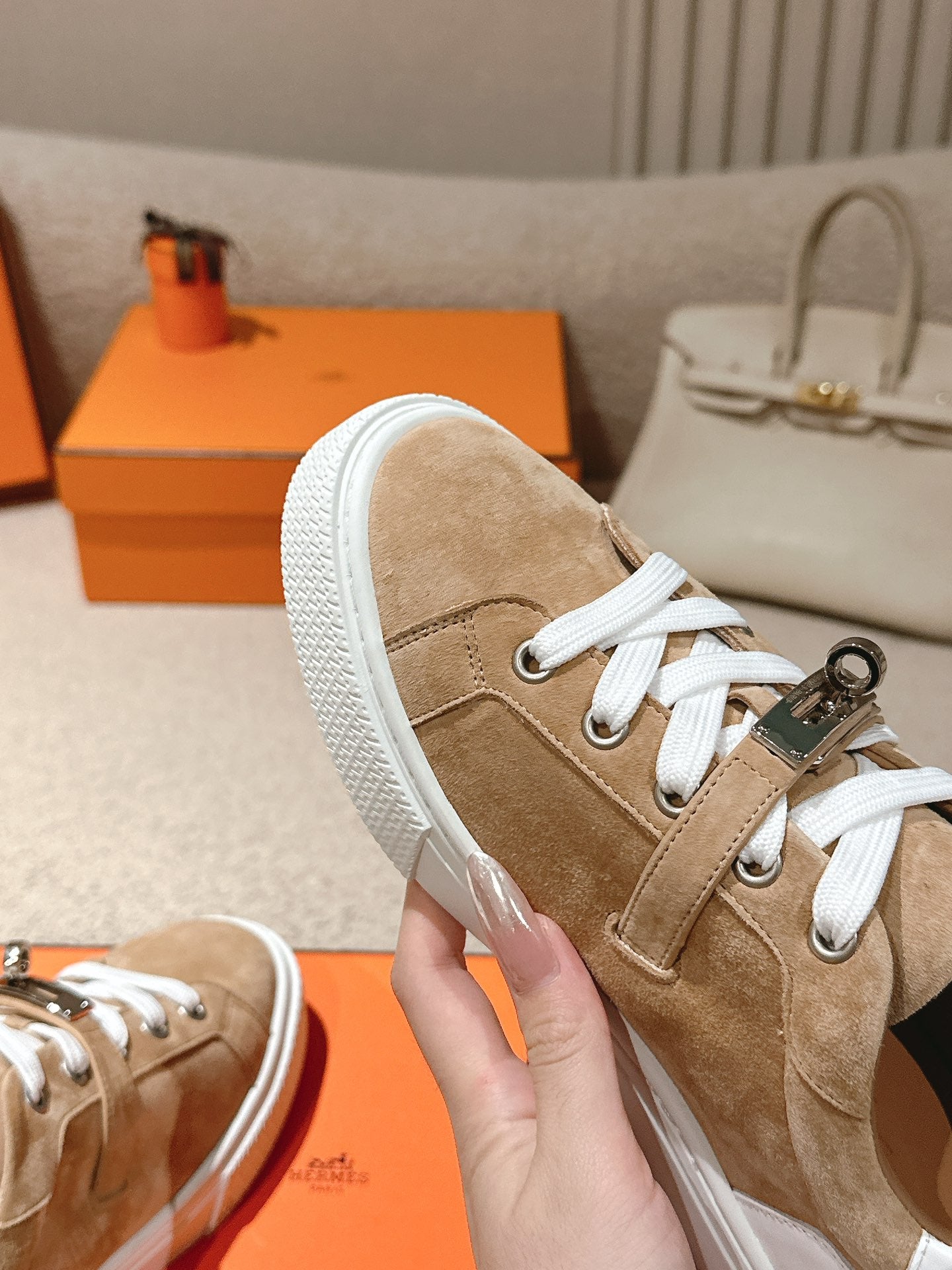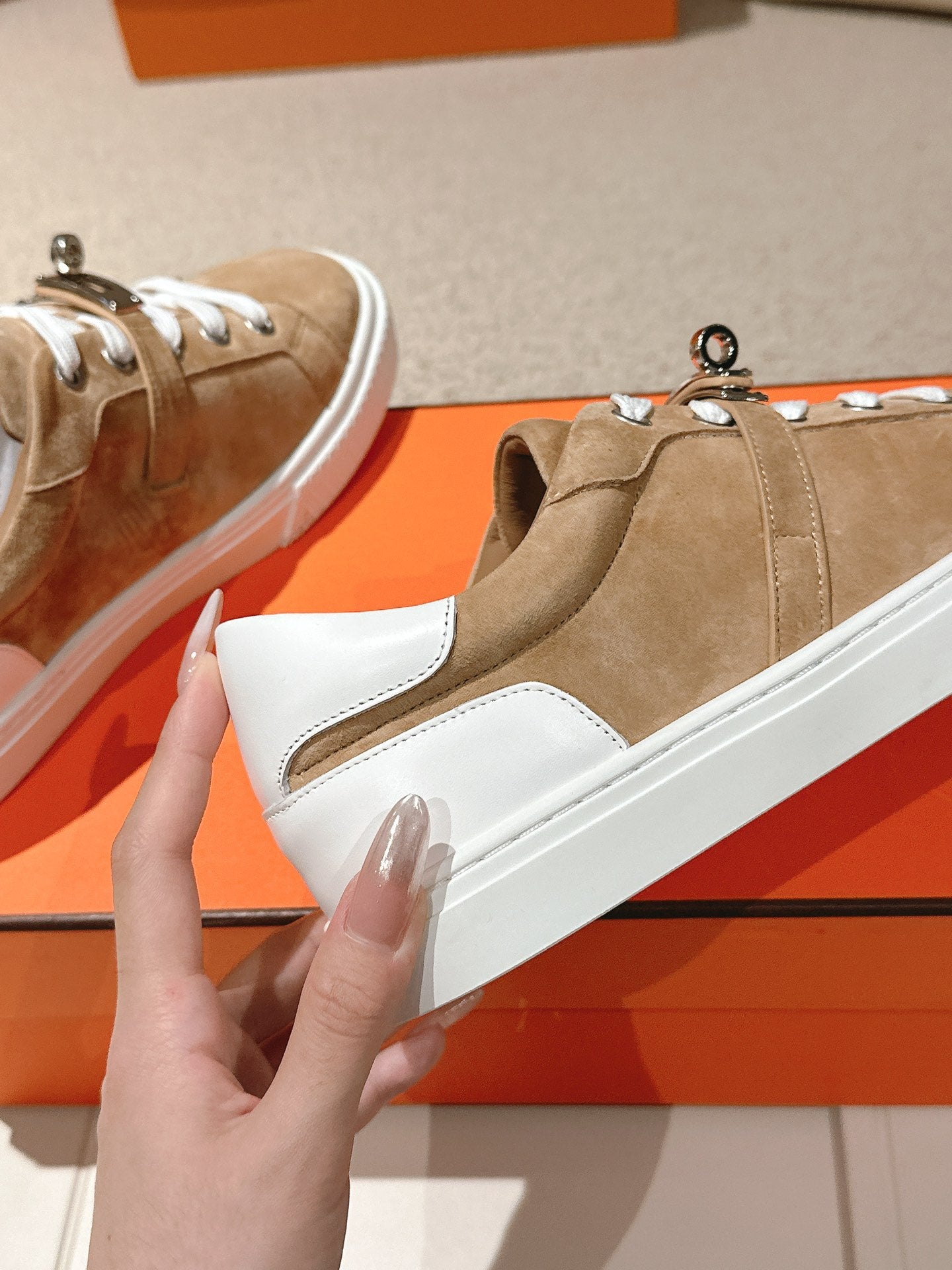 HM Day Sneakers White Brown Suede Calfskin 577512
