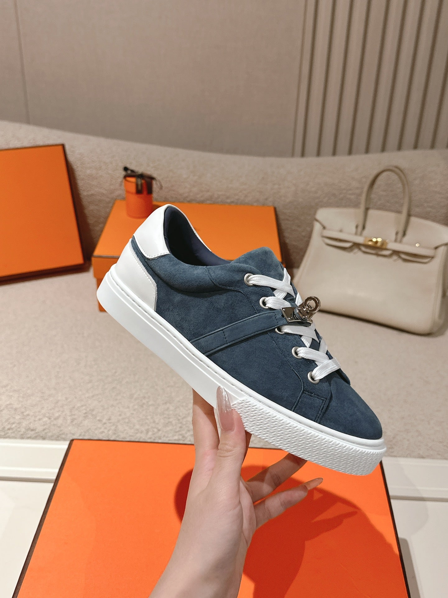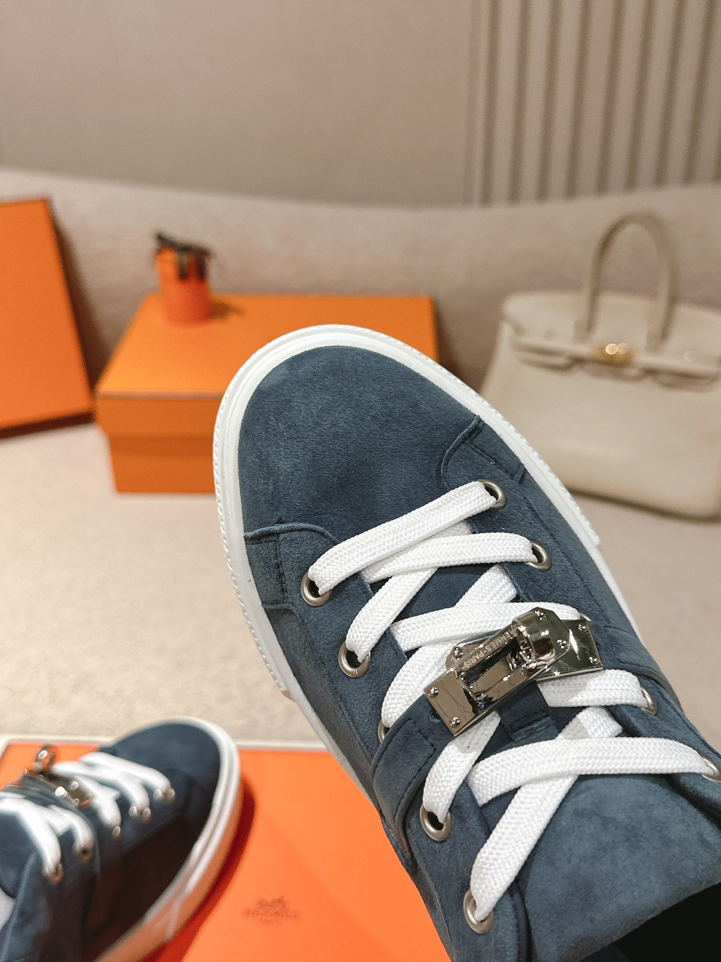 HM Day Sneakers White Dark Blue Suede Calfskin 577510