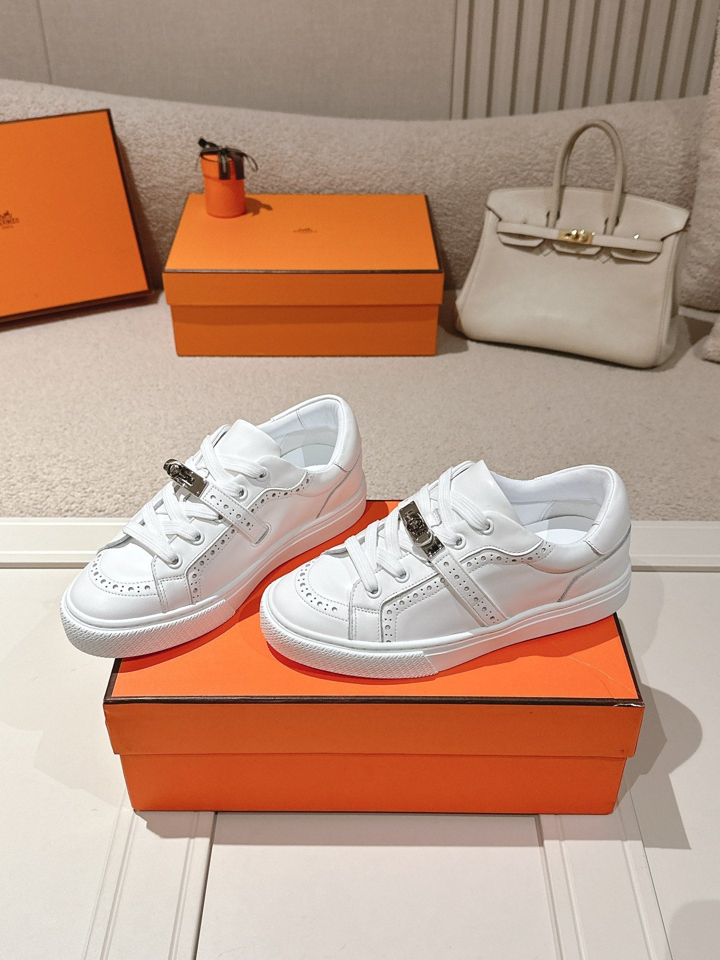 HM Day Sneakers With Perforated Strap White Calfskin 577513
