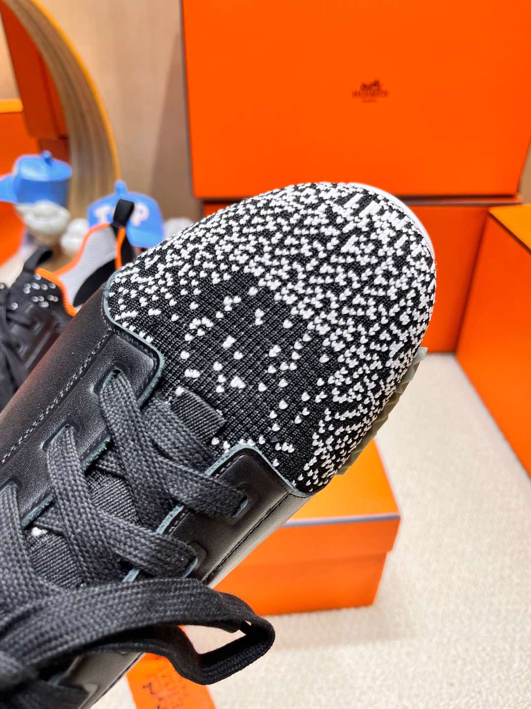 HM Depart slip-on Sneaker Black mix White Knitted fabric and Calfskin 206322