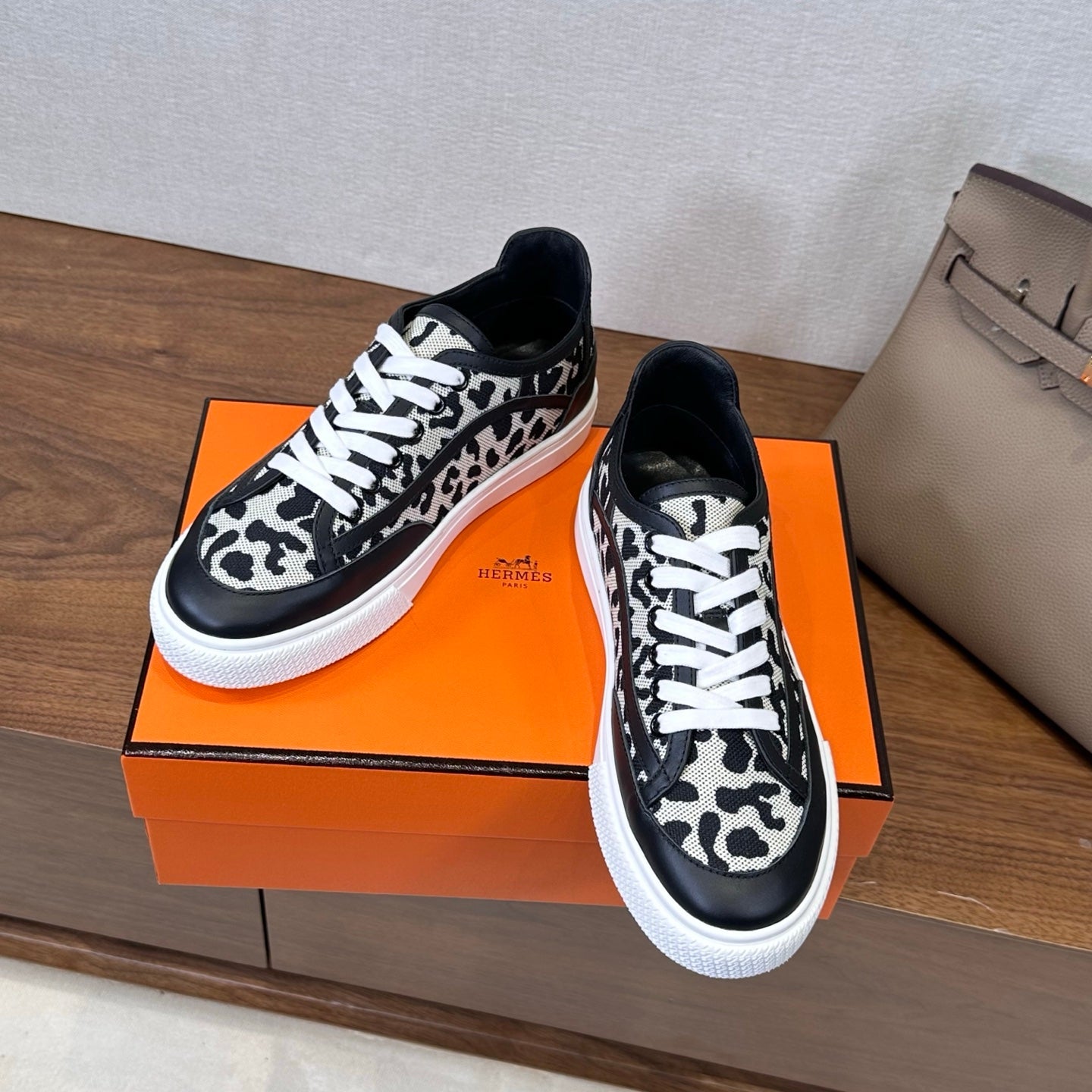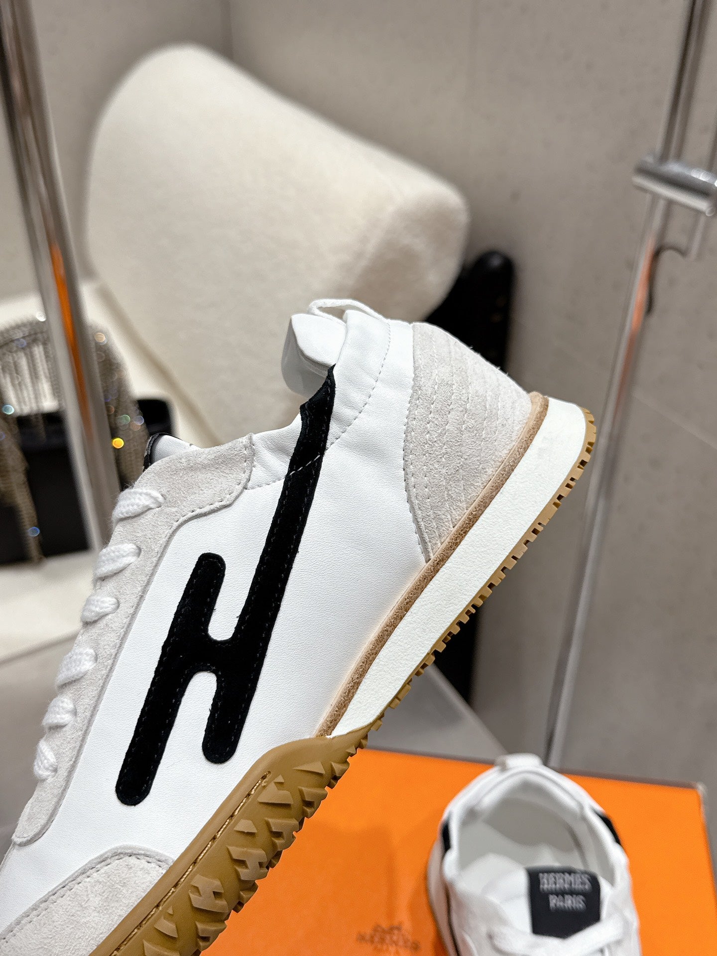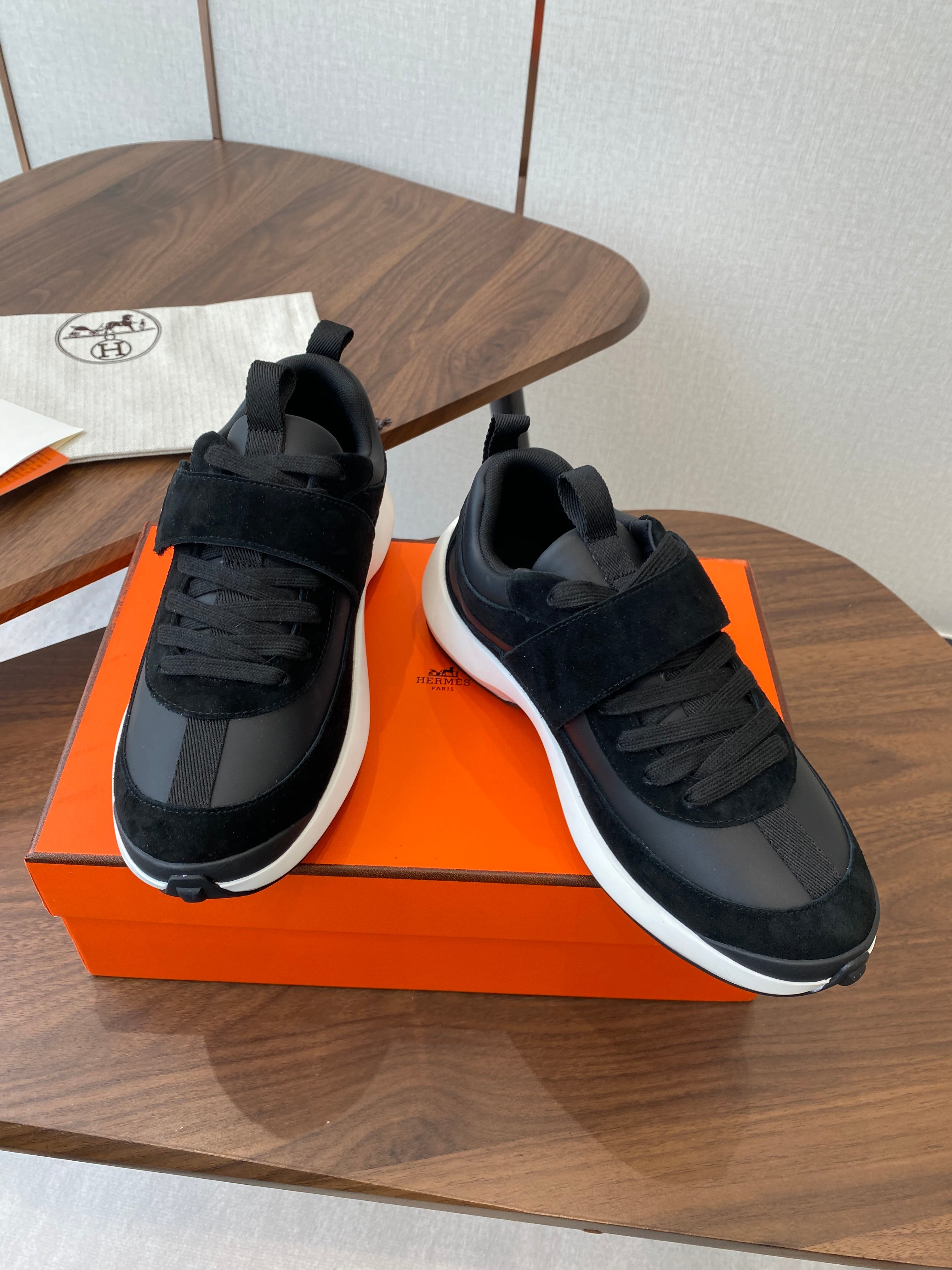 HM couple's sneakers black white beige suede
