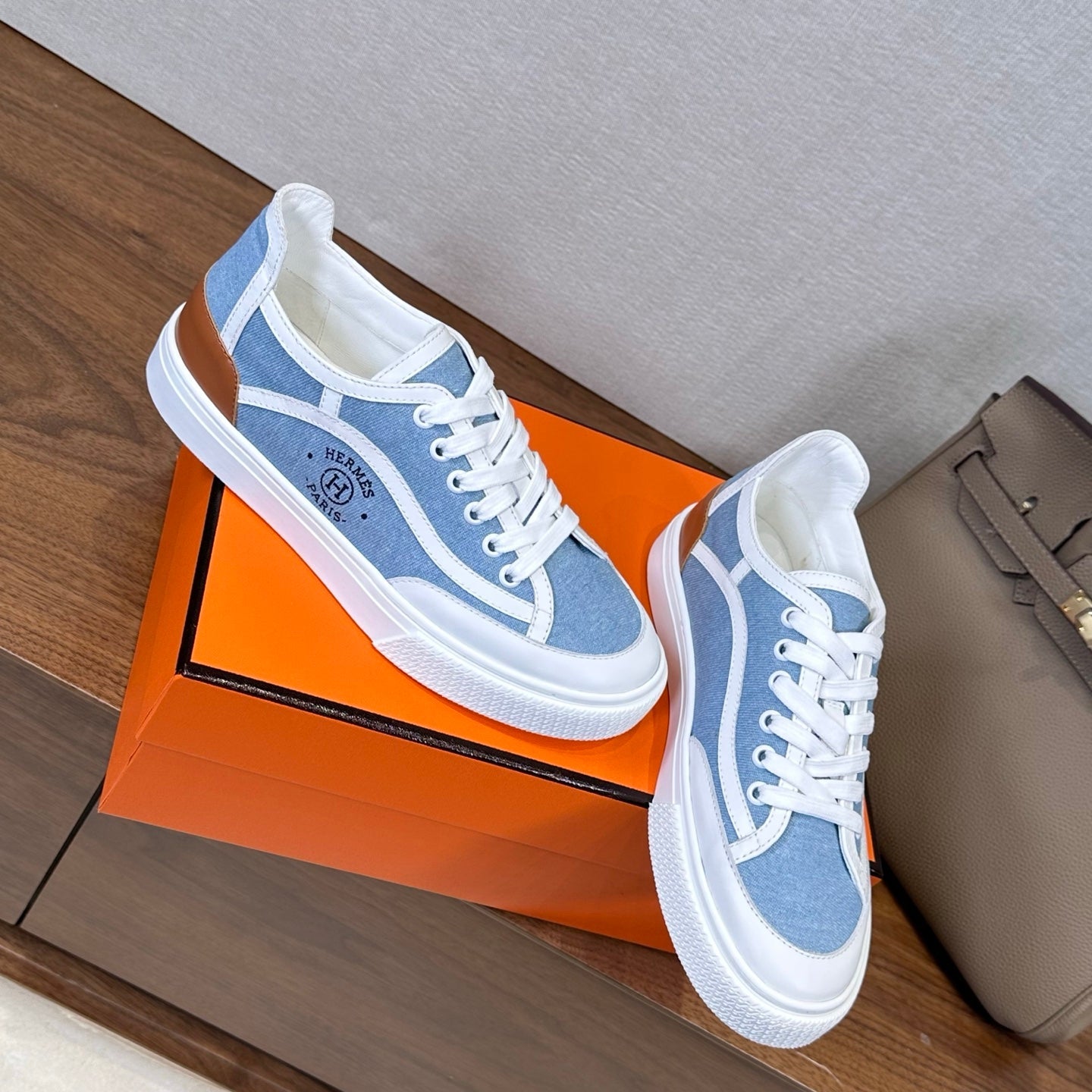 HM couple's sneakers white blue beige suede
