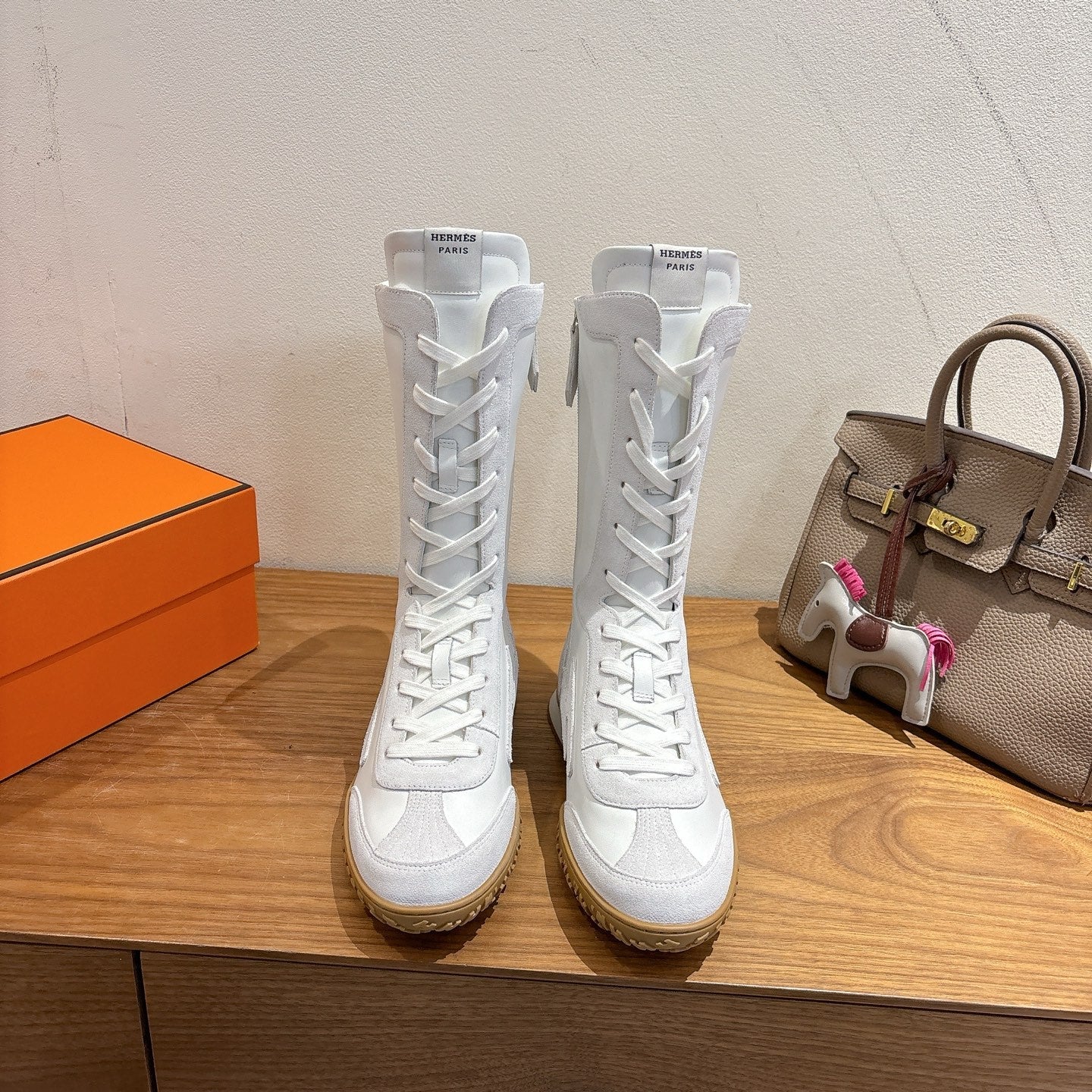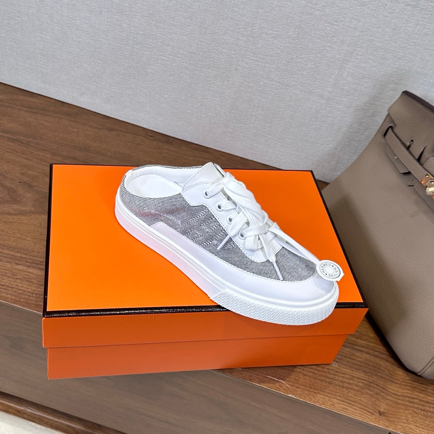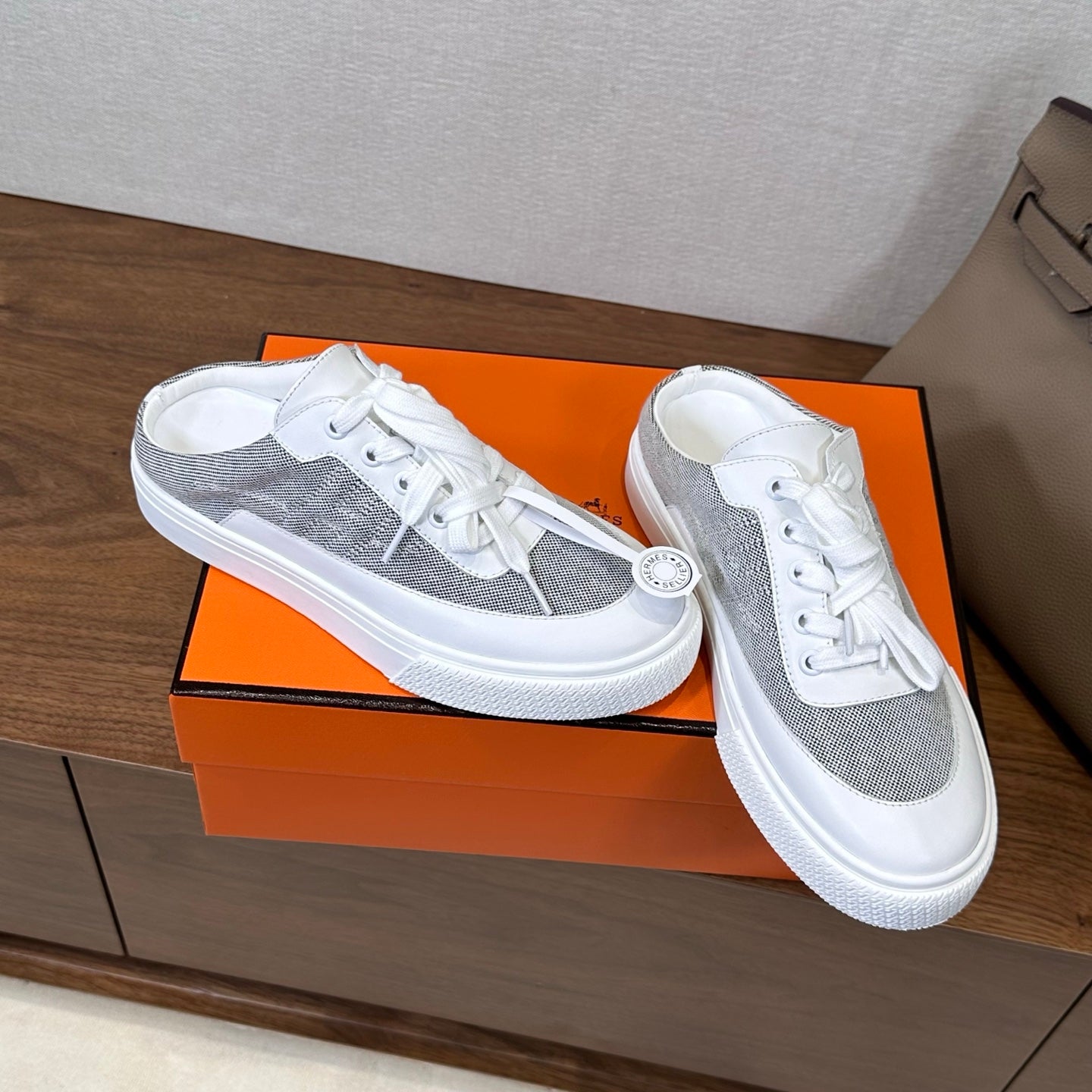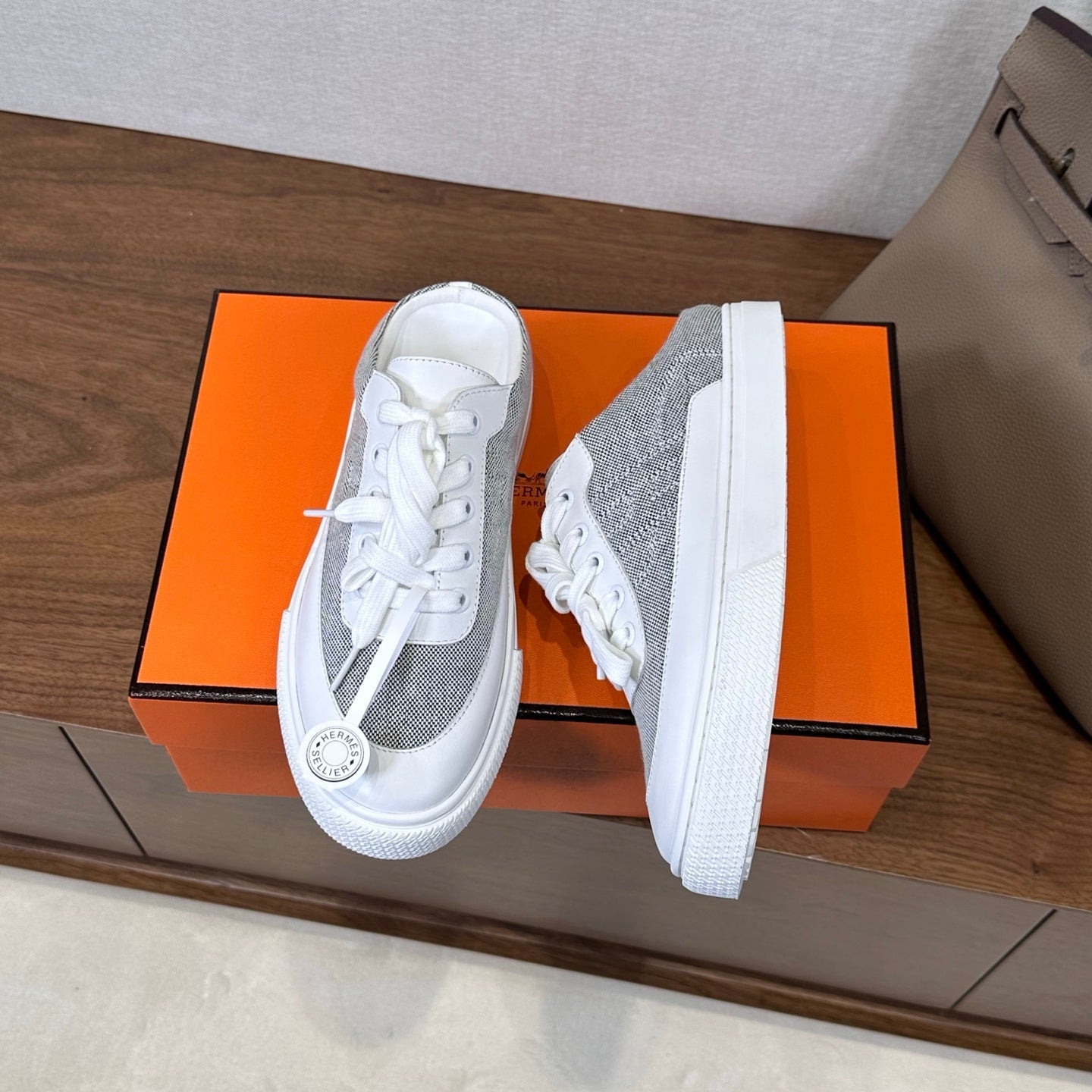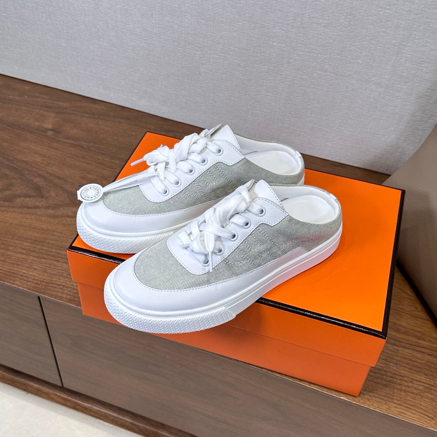 HM Lace Up Sneaker White Light Grey Calfskin Suede
