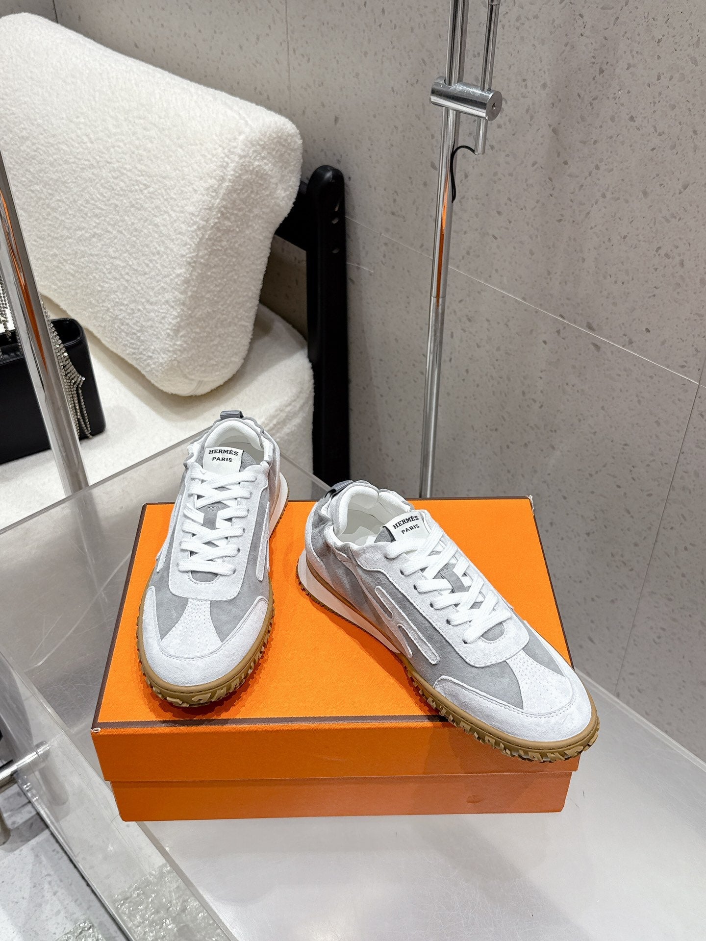 HM couple's sneakers white gray black rubber material