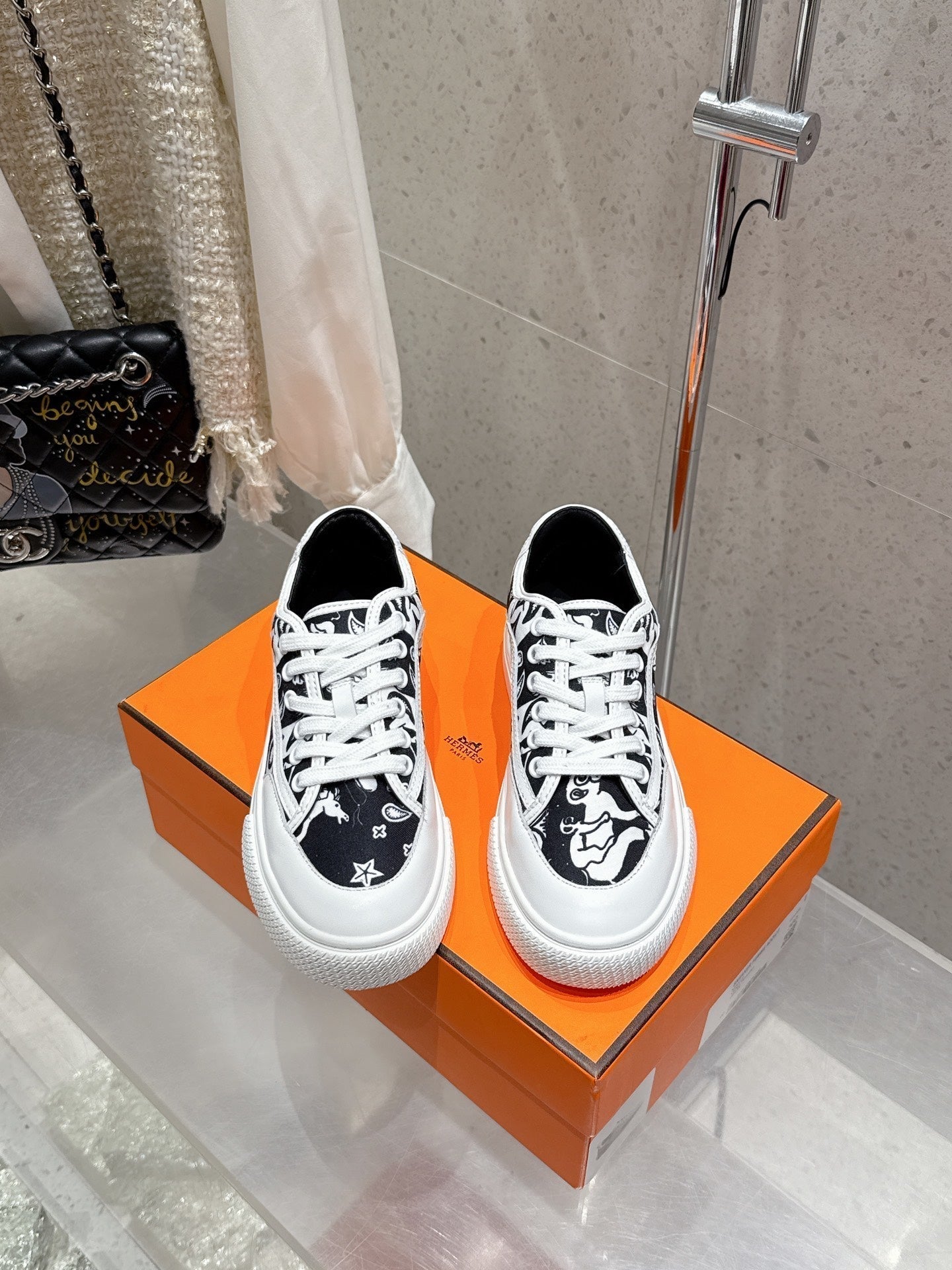 HM Get Sneaker Blanc Prunoir Canvas and Calfskin 204766