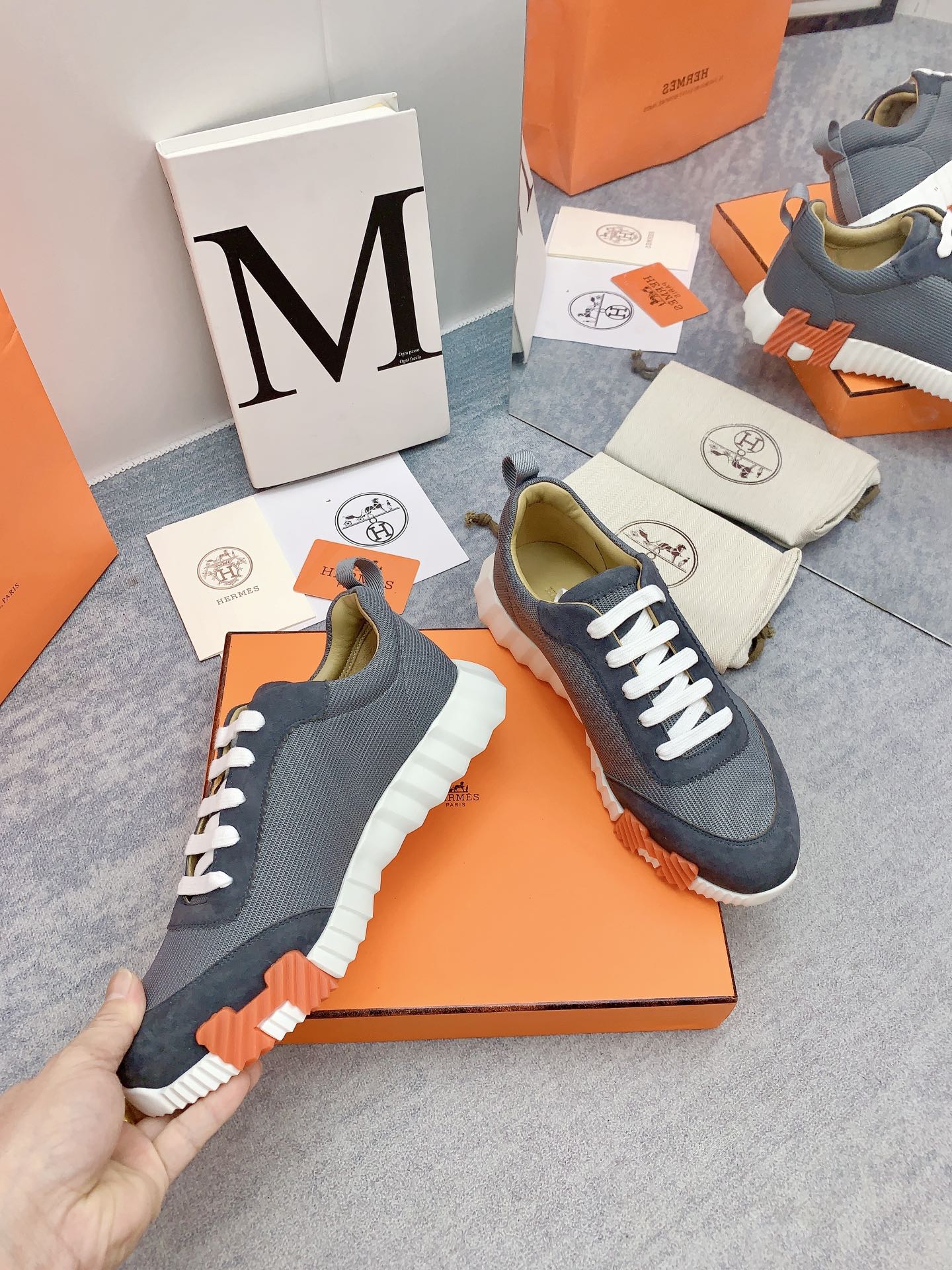 HM Bouncing Sneaker In Dark Grey Mesh Fabric 106461