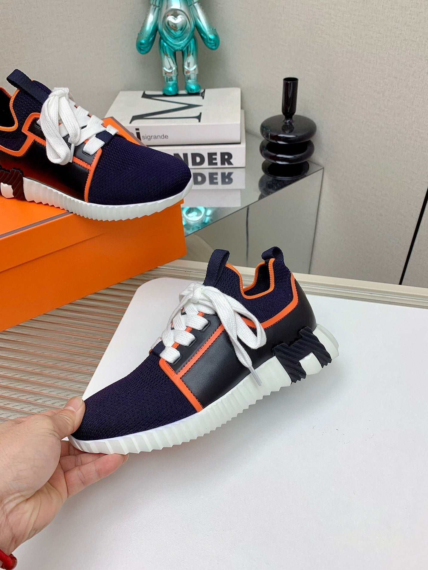 HM Bouncing Sneaker In Navy Blue Lambskin 106425
