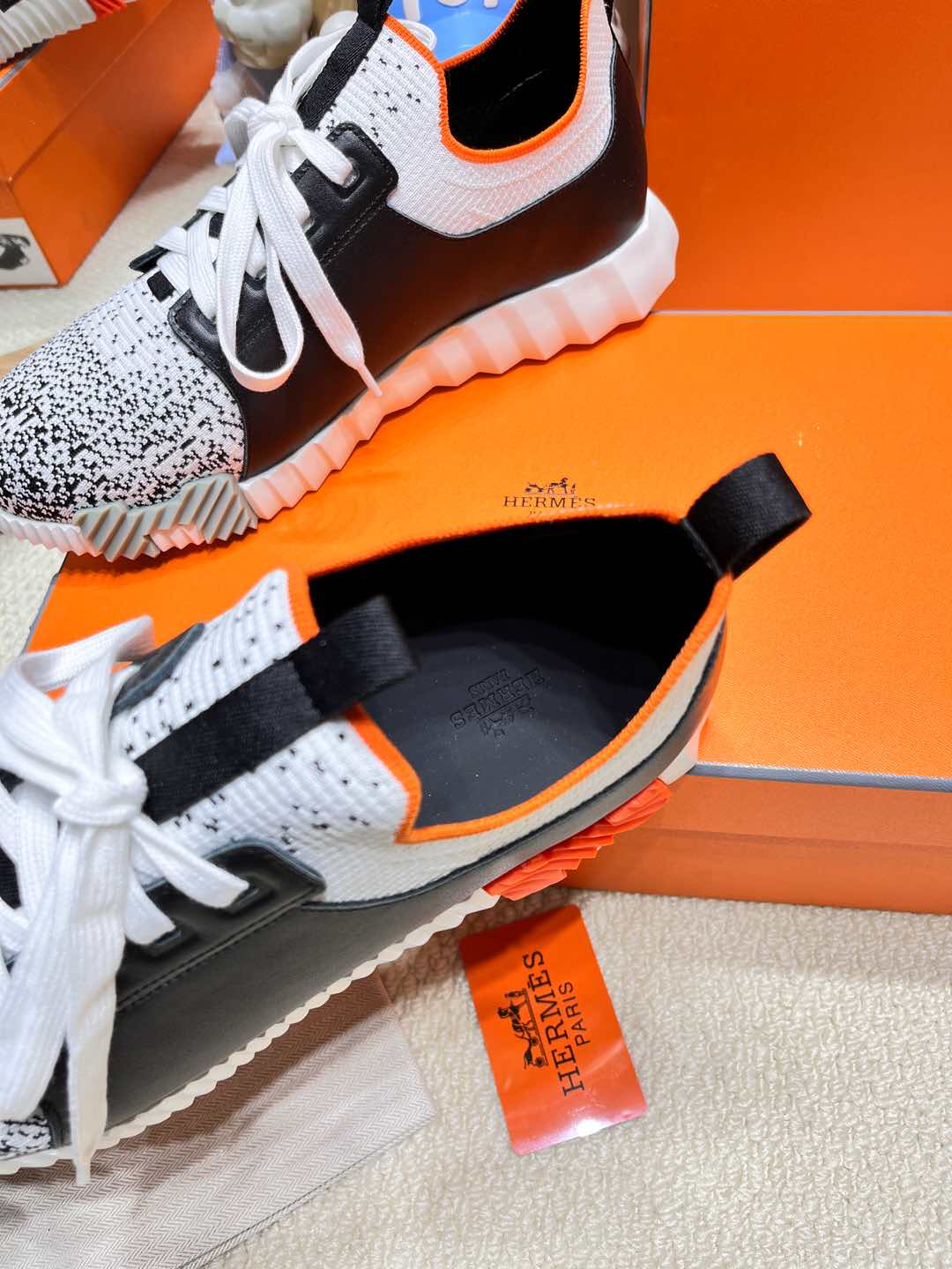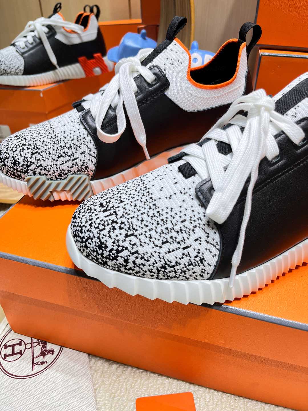 HM Depart slip-on Sneaker White and Black Knitted fabric and Calfskin 206329
