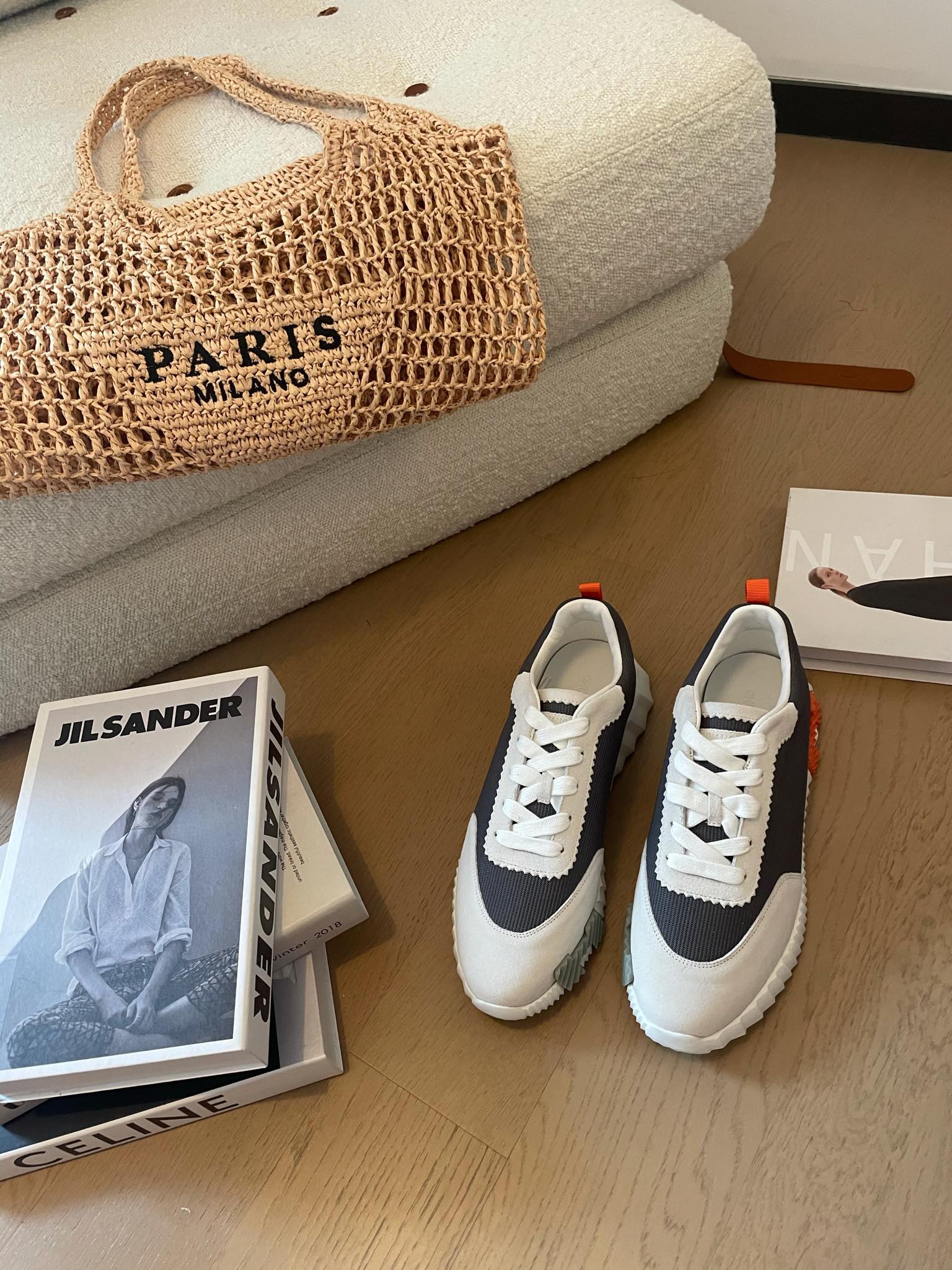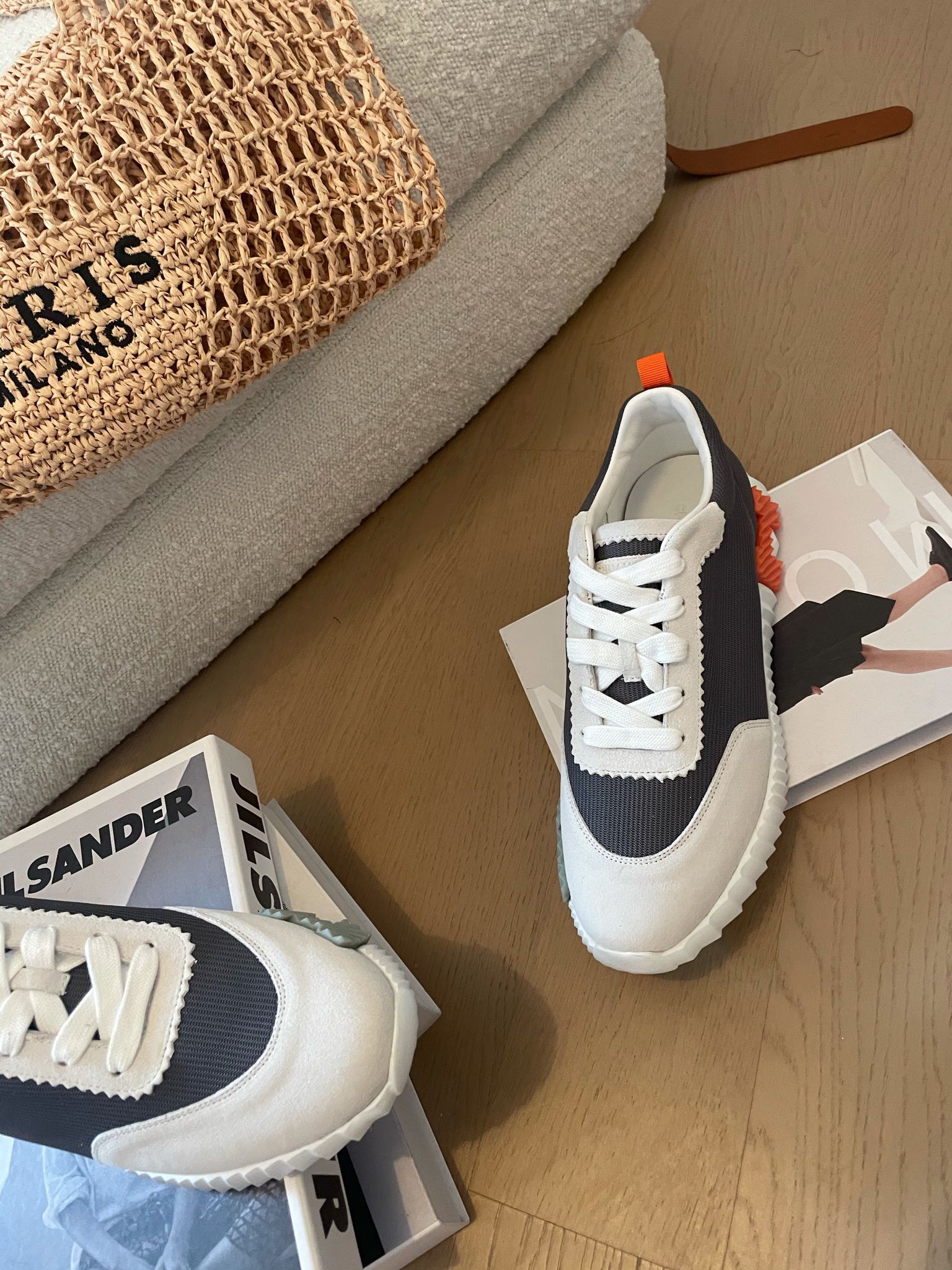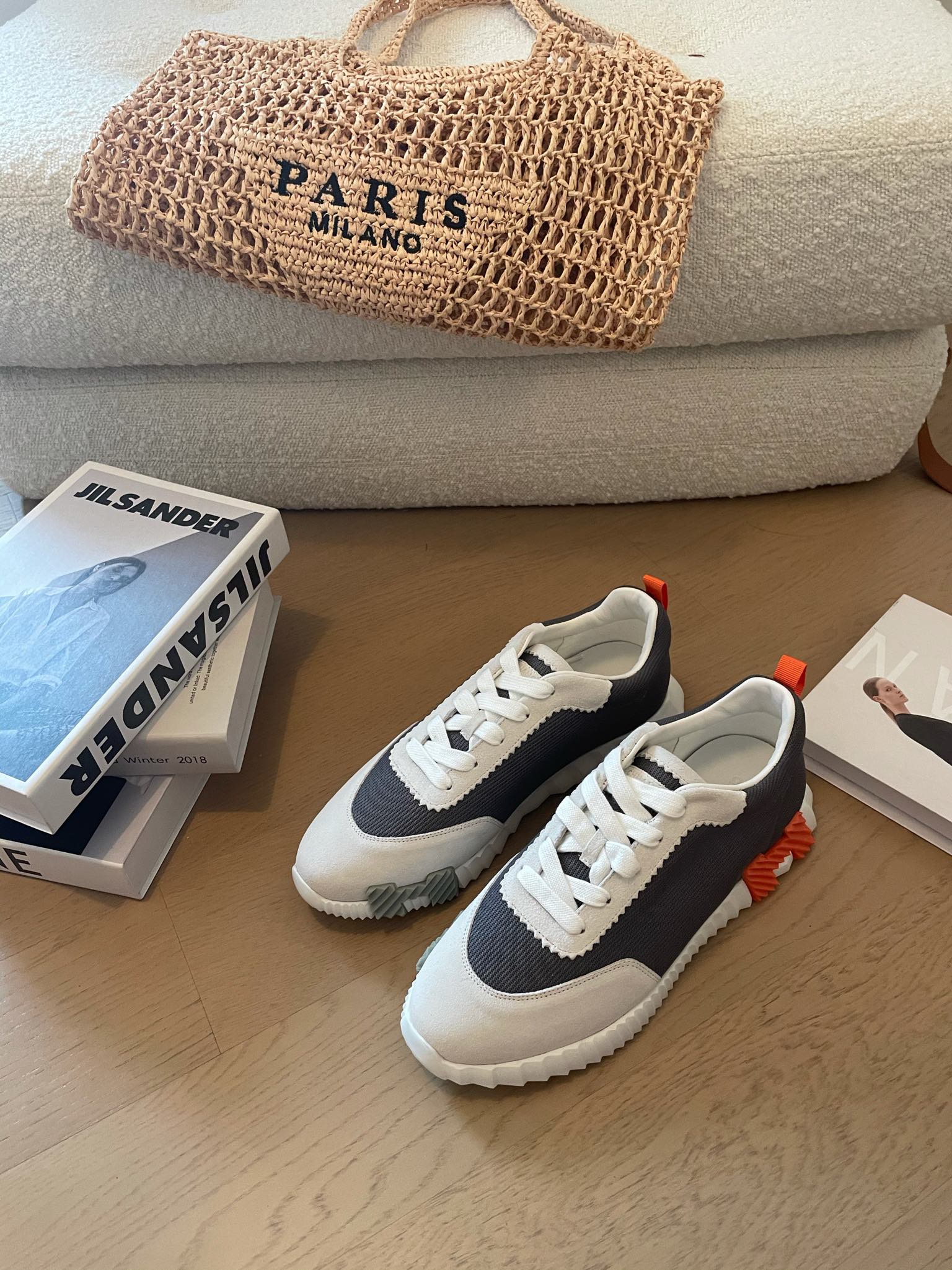 HM Bouncing 35 Sneakers Black Canvas White Suede Goatskin H Seafoam Orange