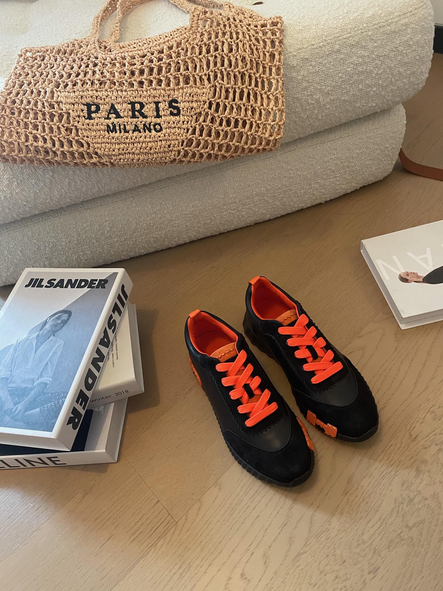 HM Bouncing 35 Sneakers Black Goatskin & Suede Goatskin Orange H Orange
