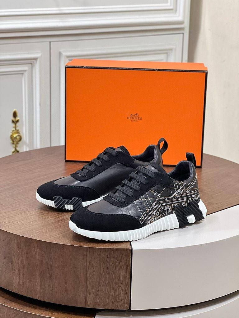 HM Bouncing 35 Sneakers Black Canvas & Suede Goatskin H Burgundy Black