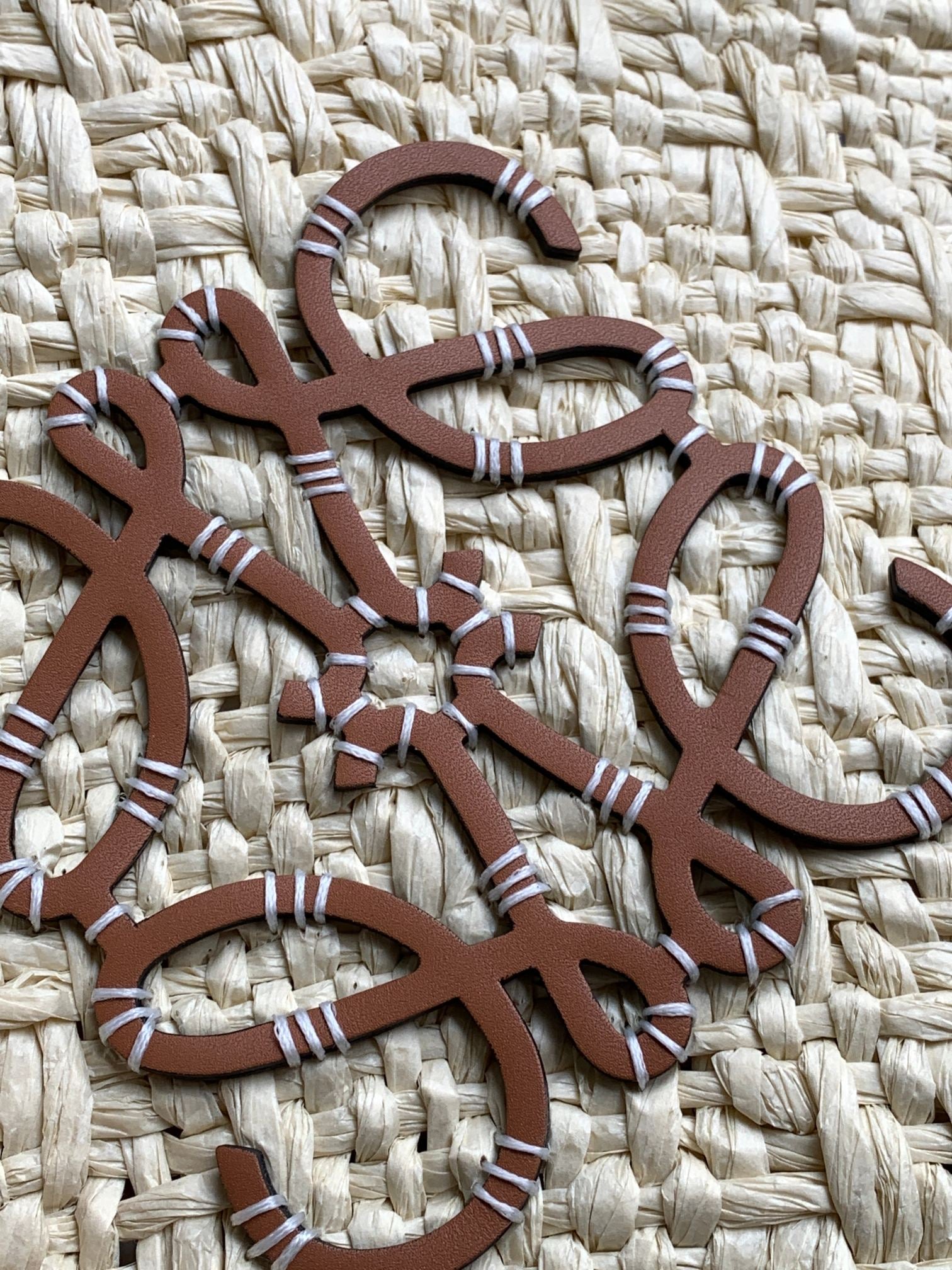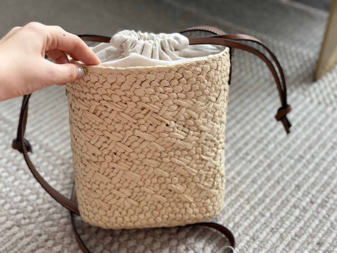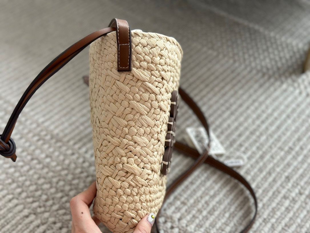LOE SMALL ANAGRAM BASKET 28 BAG IN NATURAL MIX BROWN IRACA PALM AND CALFSKIN