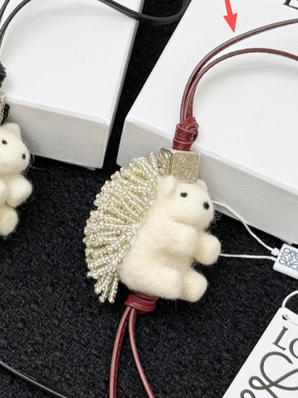 Loewe Hedgehog Charm Felt Bead and Calf