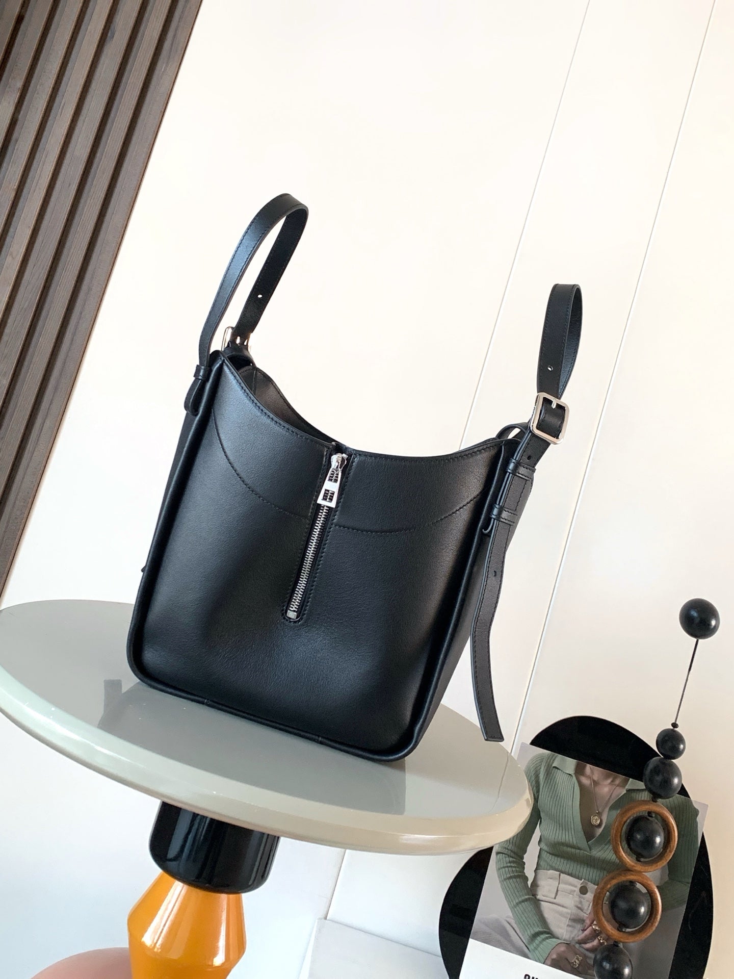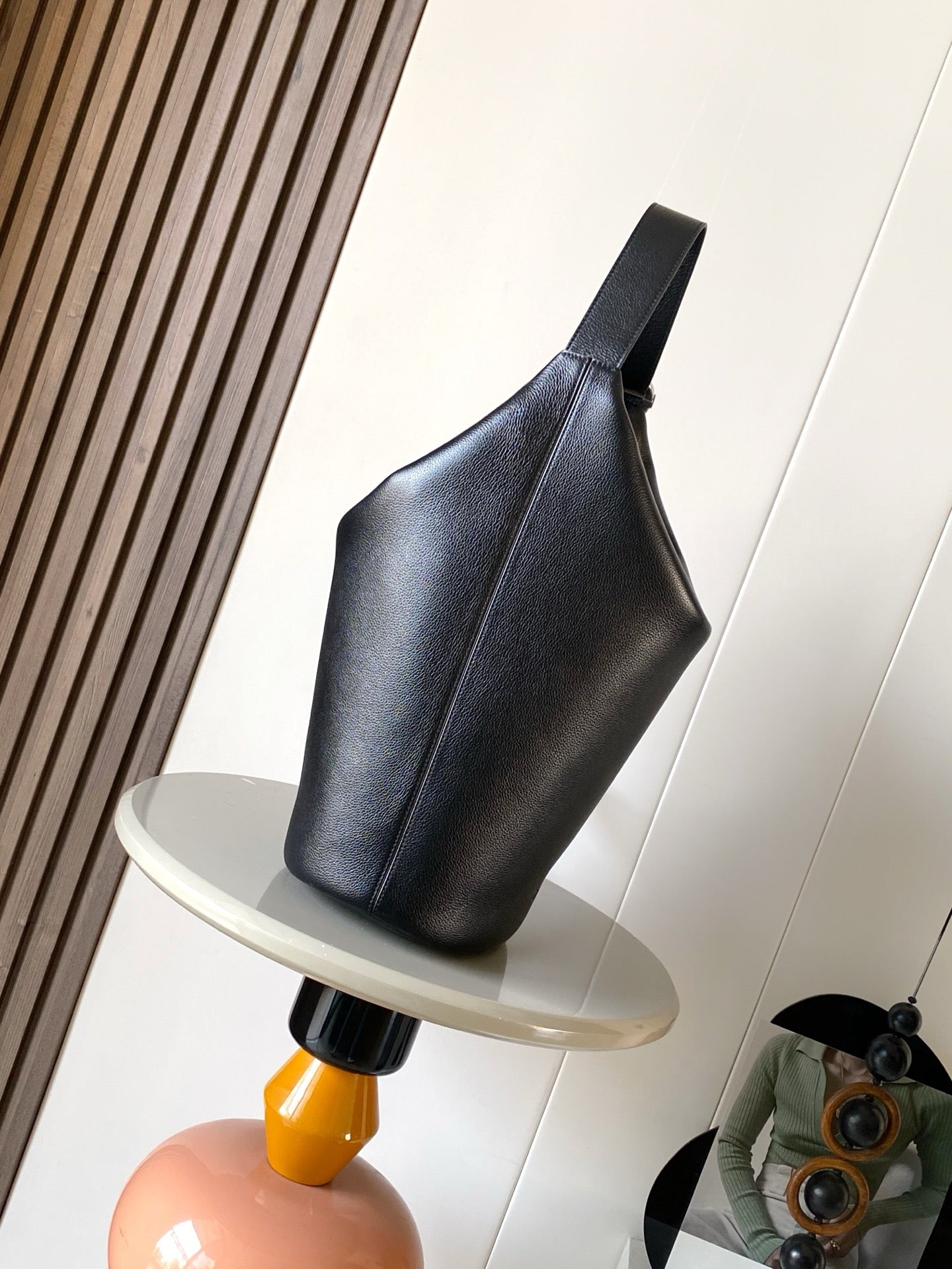 LOE MEDIUM 25 PEBBLE BUCKET IN BLACK MELLOW CALFSKIN