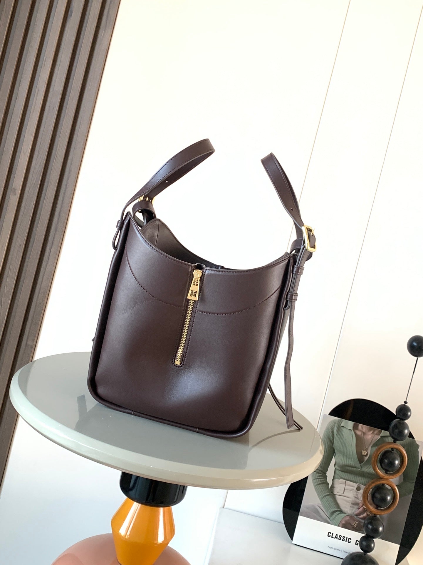 LOE 20 HAMMOCK COMPACT BAG IN UMBER BROWN CALFSKIN