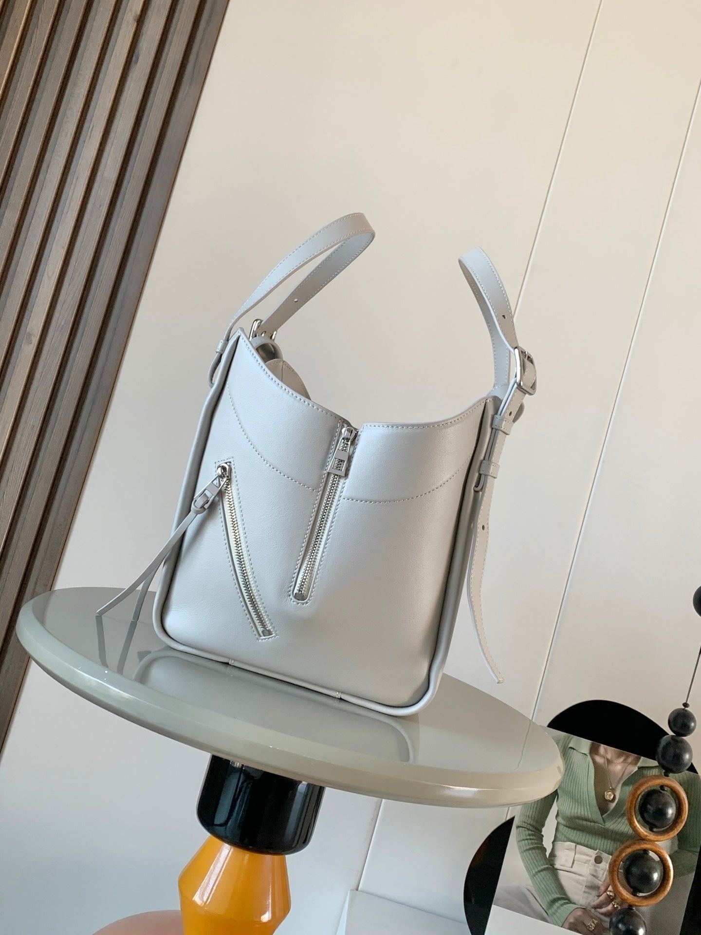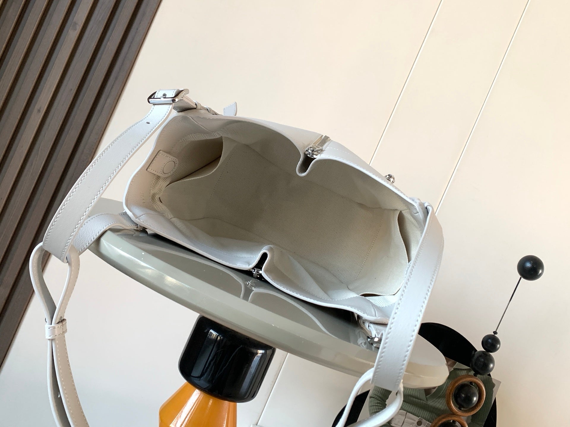 LOE MEDIUM 30 FLAMENCO PURSE BUCKET IN WHITE LAMBSKIN