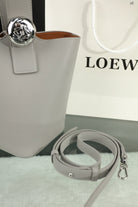 LOE MINI 19 PEBBLE BUCKET IN GRAY STEEL MELLOW CALFSKIN