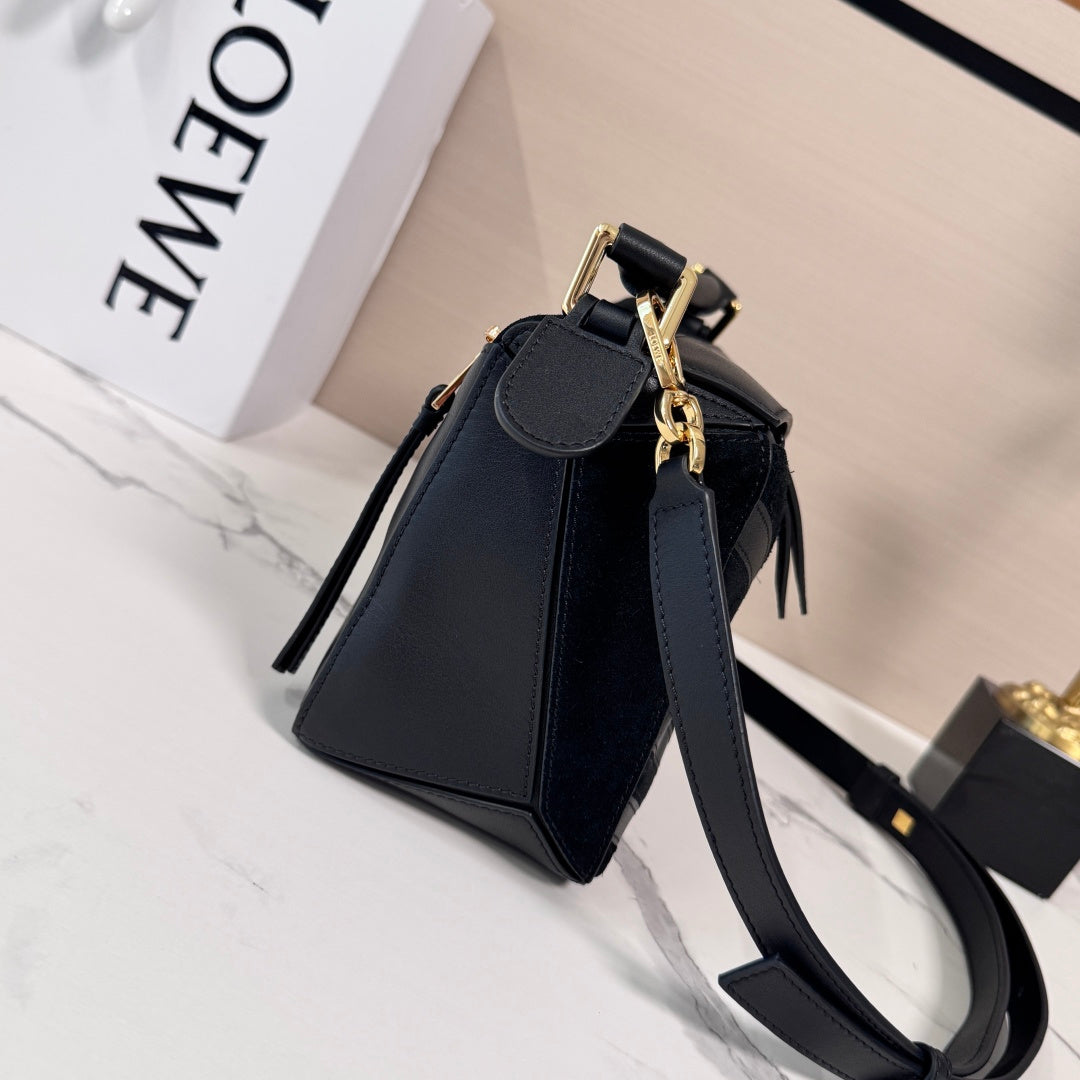 Small Puzzle Bag Black Calfskin Suede
